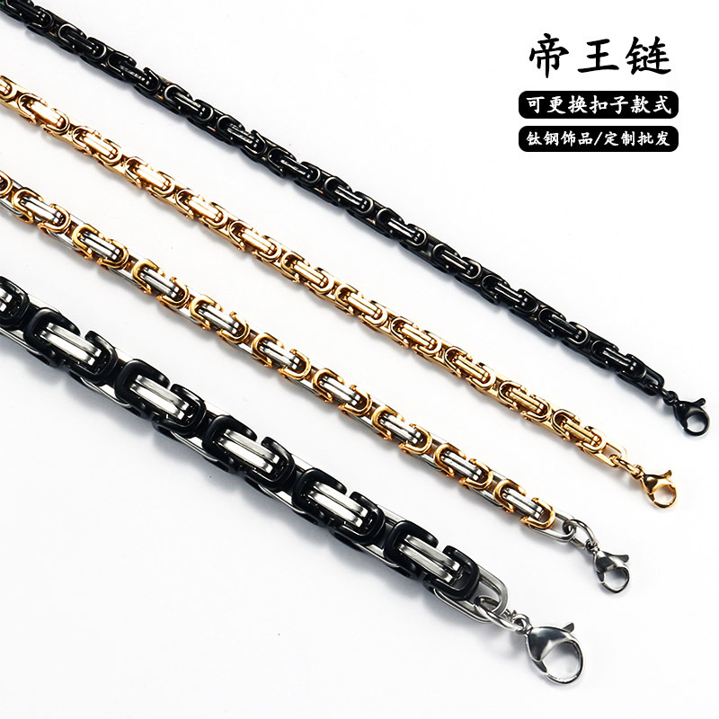 クロスボーダーアクセサリー、トレンディなメンズキングチェーン、ゴールドの角型バックル、回形チェーン、チタン鋼ブレスレット、ブラックネックレスセット、ヒップホップチェーン