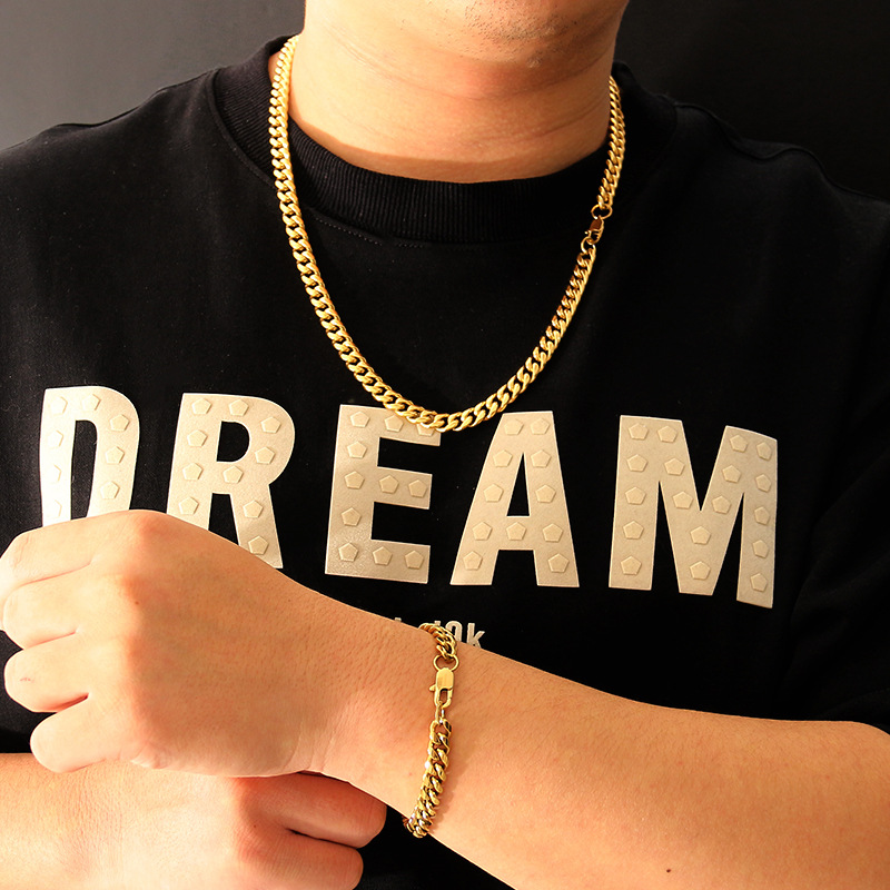 源工場円磨キューバチェーンファッションヒップホップチタン鋼ネックレス色落ちしない男女通用カップルブレスレット現物