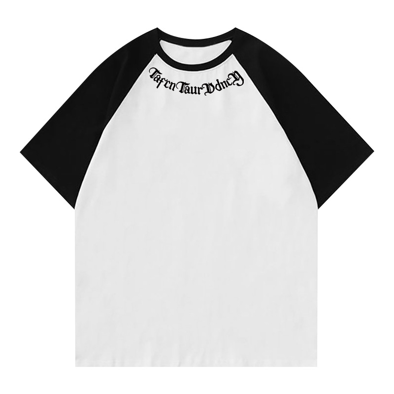 黒と白のラグラン純綿半袖-241 高品質バージョン