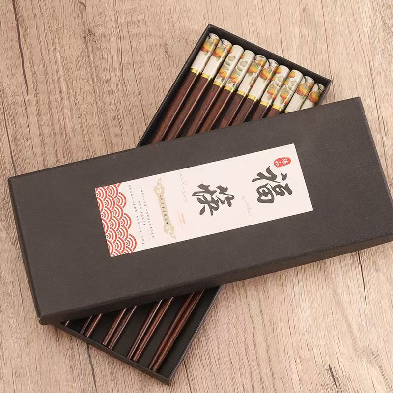 家庭用の実木箸は滑り止めでかびにくいプリント箸柿柿如意高颜値木食器卸売り
