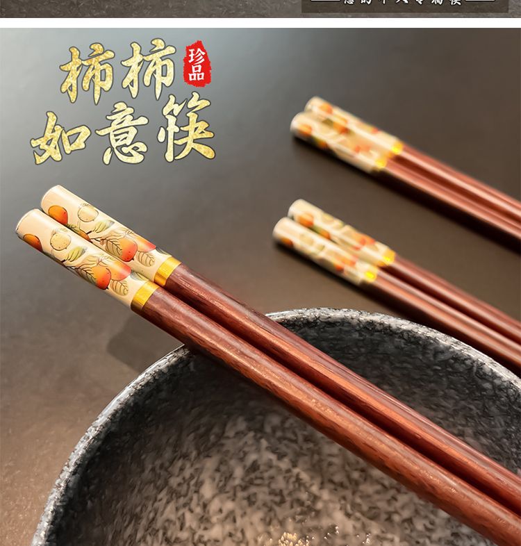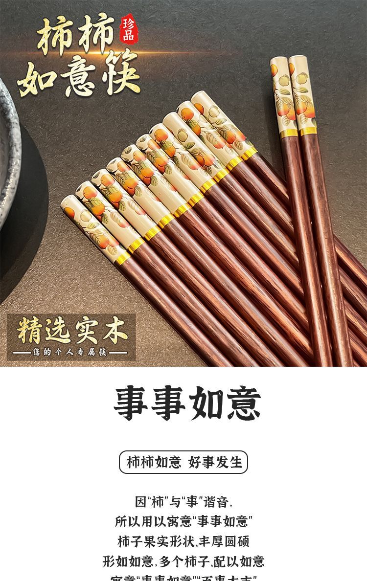 10双柿柿如意筷子高档家用防滑中式筷子厨房用具事事如意筷子家用