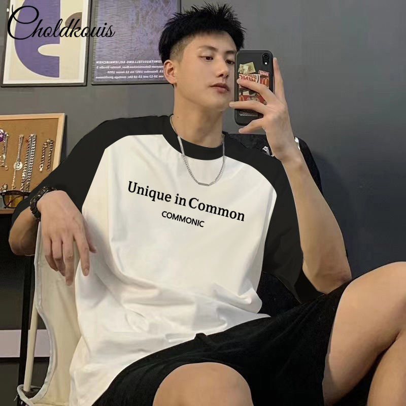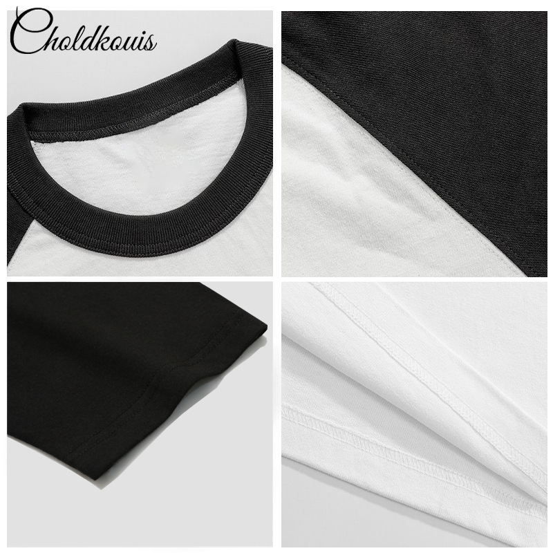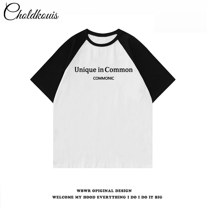 黒と白のラグラン純綿半袖-1439 高品質バージョン