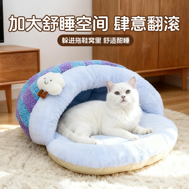 拖鞋狗窝冬天保暖小型犬泰迪窝狗床半封闭式幼猫窝工厂批发可代发