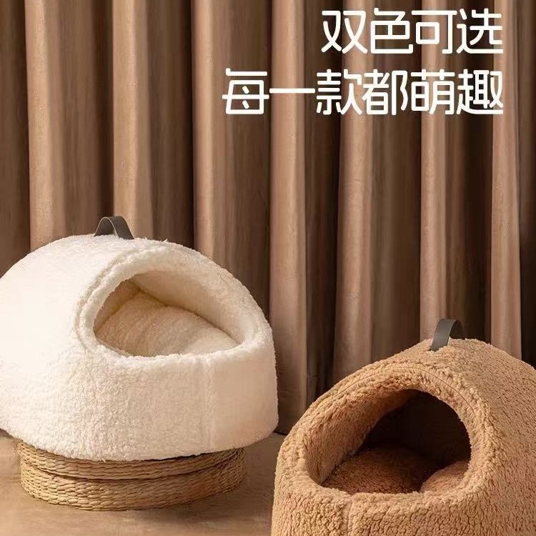 羊羔绒棉拖猫窝猫别墅冬季封闭式安全感宠物睡窝可拆洗小型狗窝
