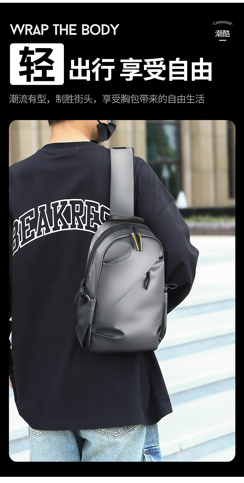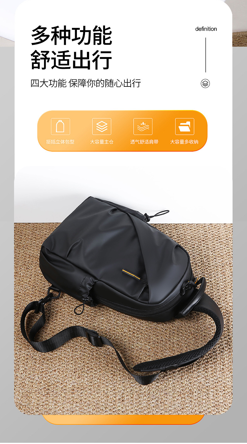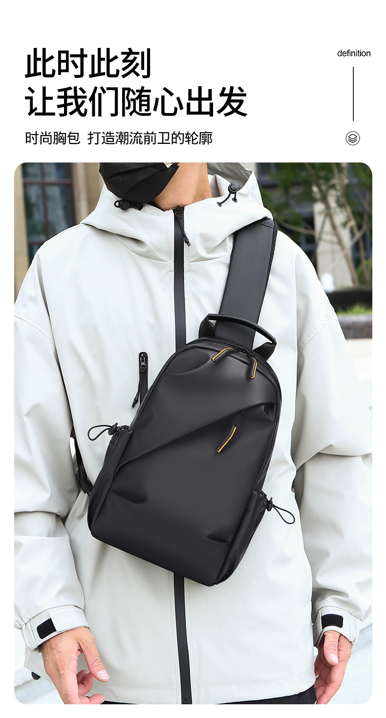 跨境高级感男士胸前包外出通勤旅游单肩背包男大容量放水杯斜挎包