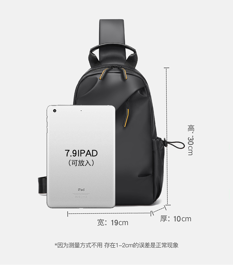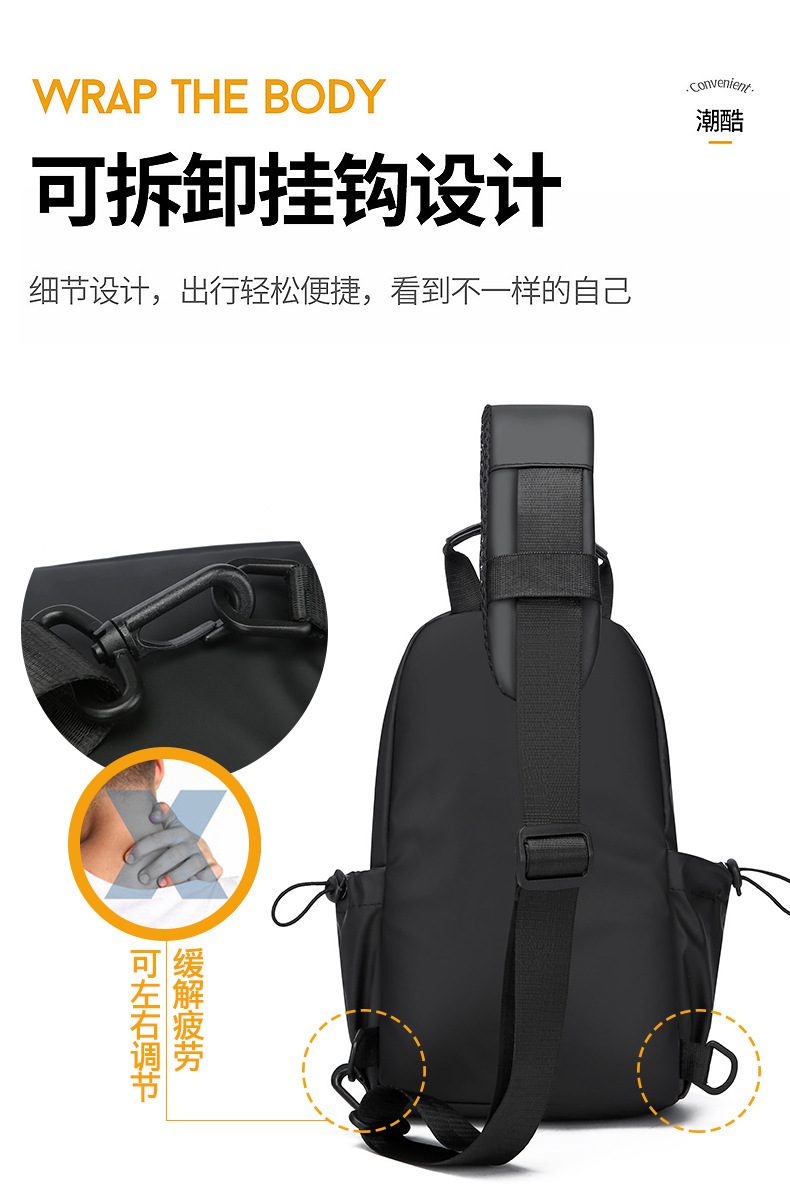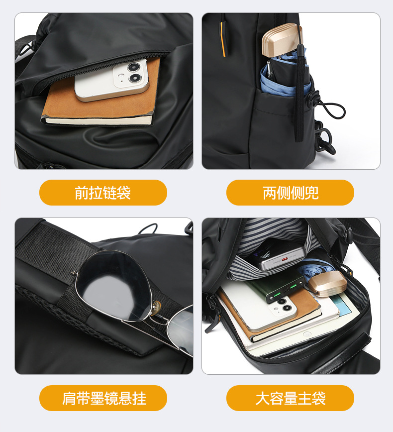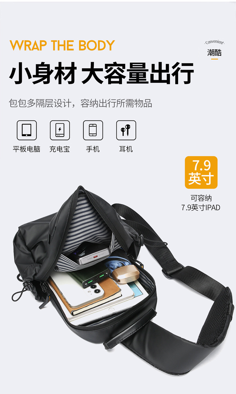 跨境高级感男士胸前包外出通勤旅游单肩背包男大容量放水杯斜挎包