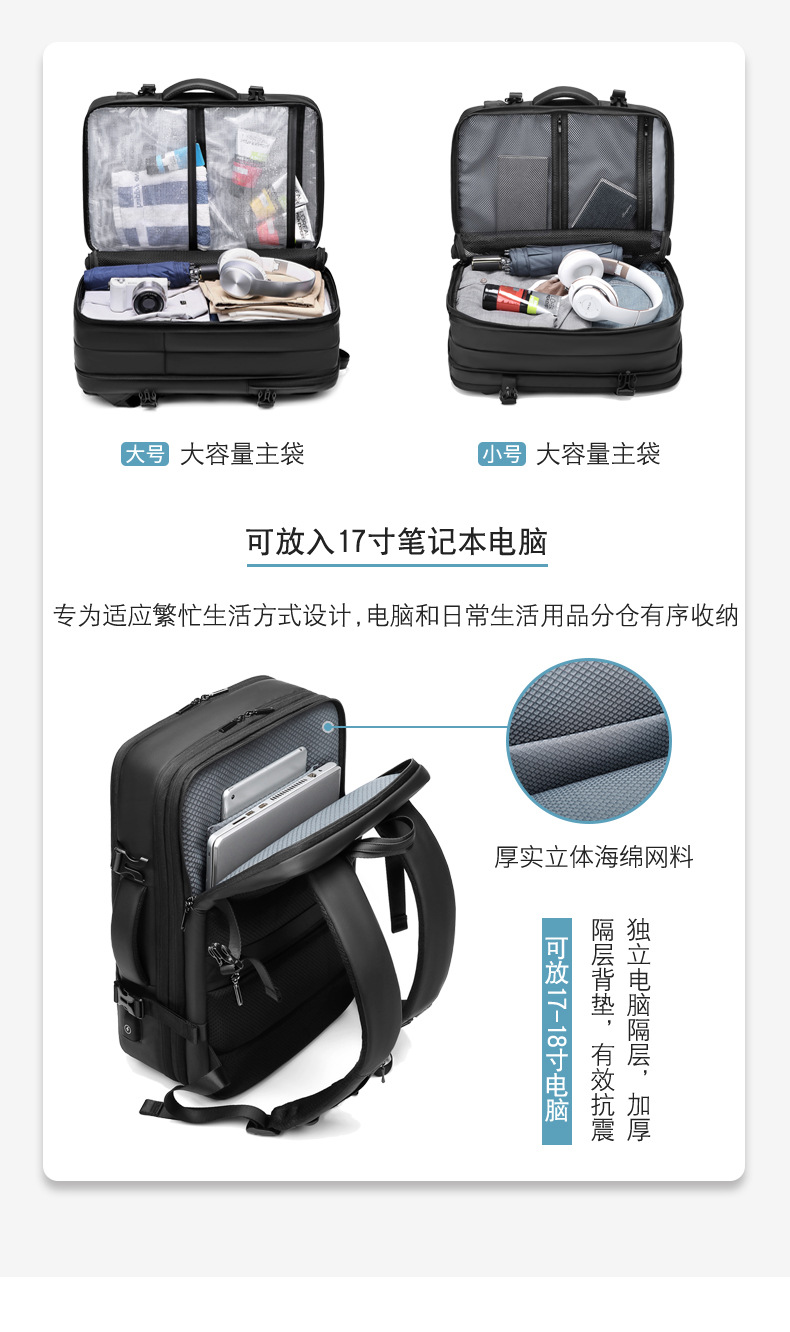 広州カバンリュックサックメンズ高级感出张ビジネスパソコンカバン防水旅行カバン真空圧縮リュックサック