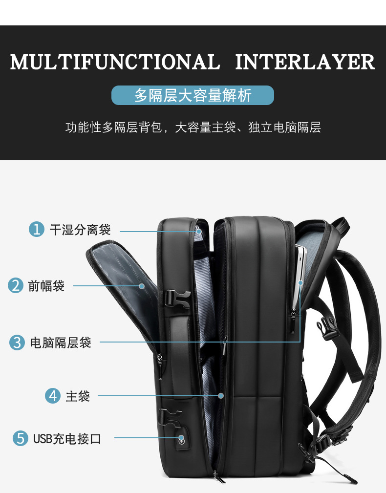 広州バッグメンズリュックサック高级感出张旅行多机能ビジネスパソコンバッグ真空圧縮リュックサック