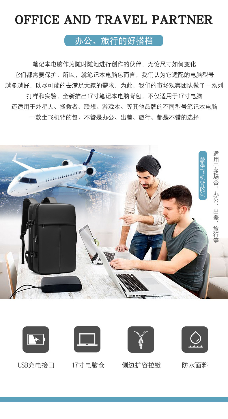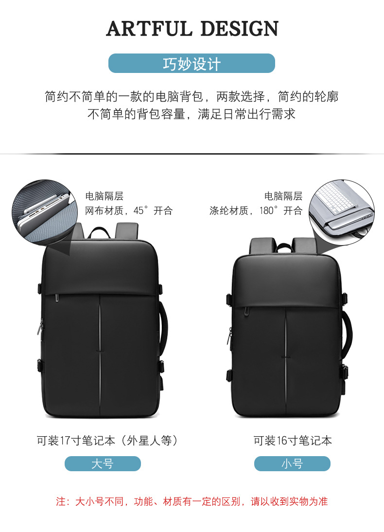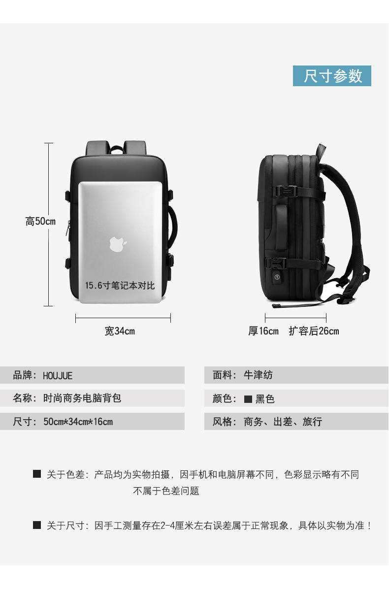 批发跨境商务旅行双肩背包男士大容量可扩容旅行包防水短途行李包