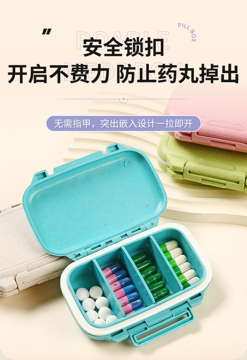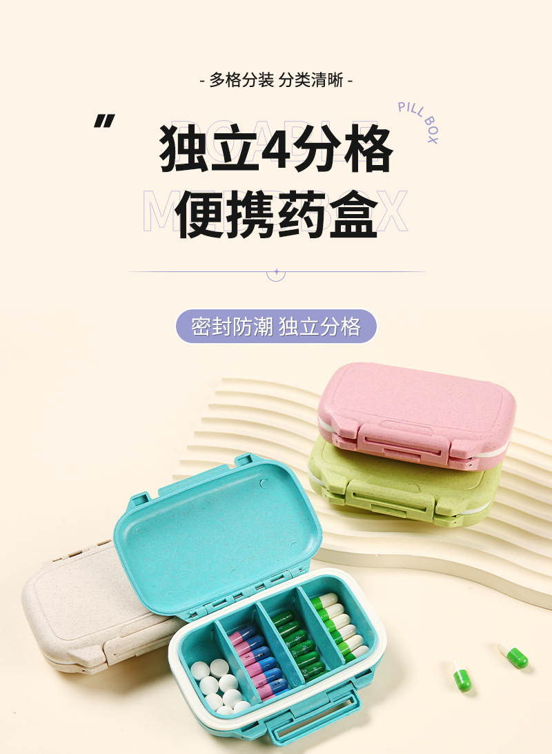 メーカー卸売り取り外し可能なピルケース携帯用ピルケース4段分注ケース密封薬品ケース現物印刷ロゴ