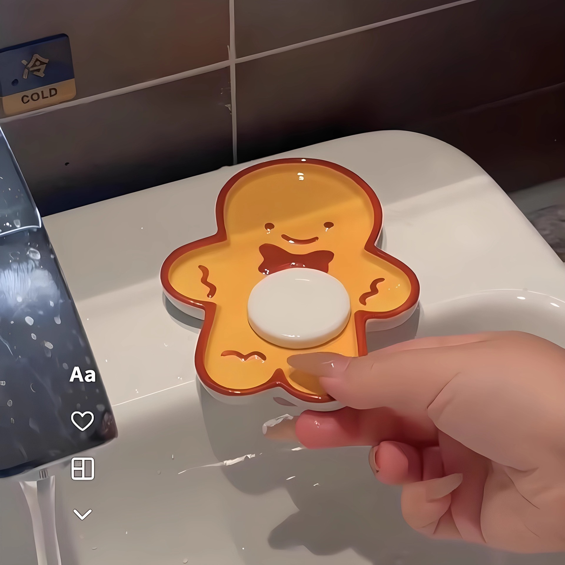 姜饼人肥皂盒可爱饼干人陶瓷可沥水香皂收纳置物架卡通不积水皂碟
