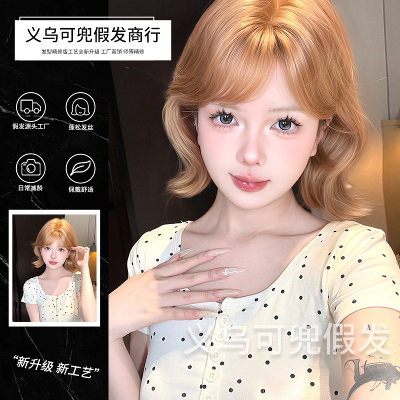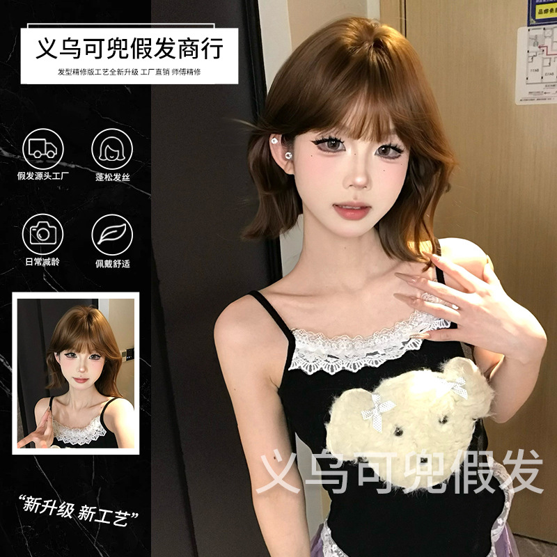 カツラの女性の日常ネットの赤いショートヘアの巻き髪lolitaの新型の自然な全体のカバーのうそ