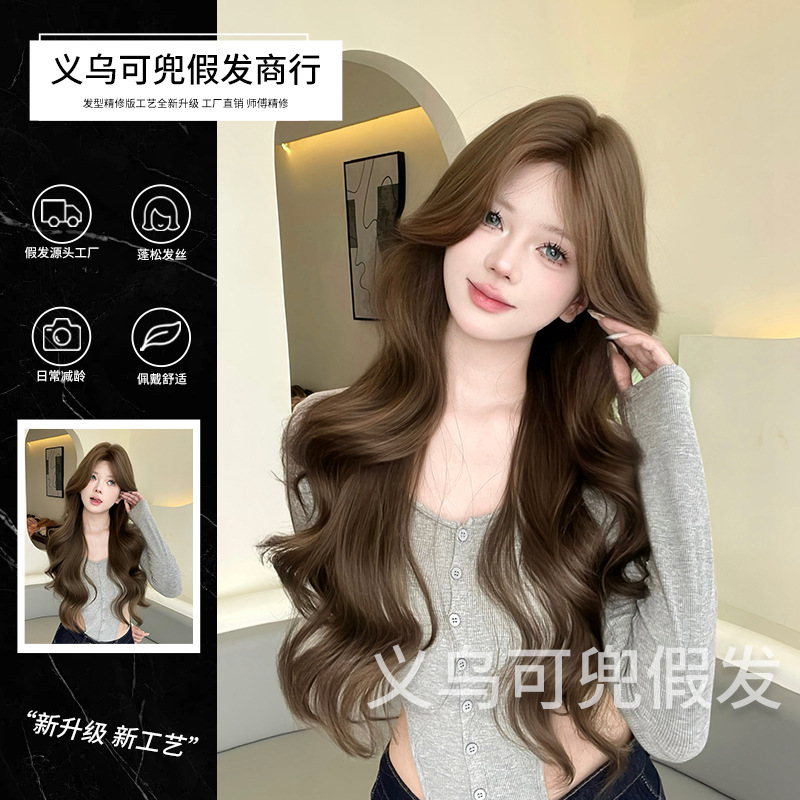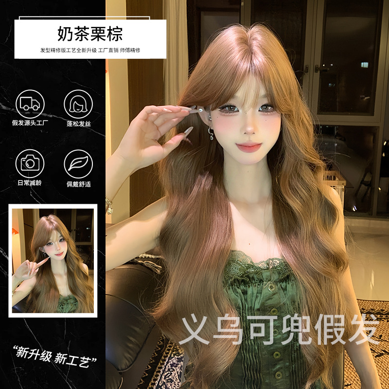 クロスボーダー卸売りかつら女性冷茶色長髪lolita日常ネット赤自然甘美でかわいいリアルな