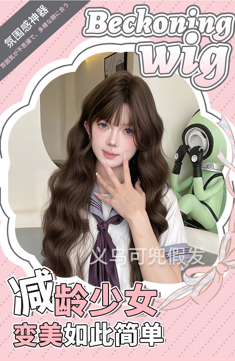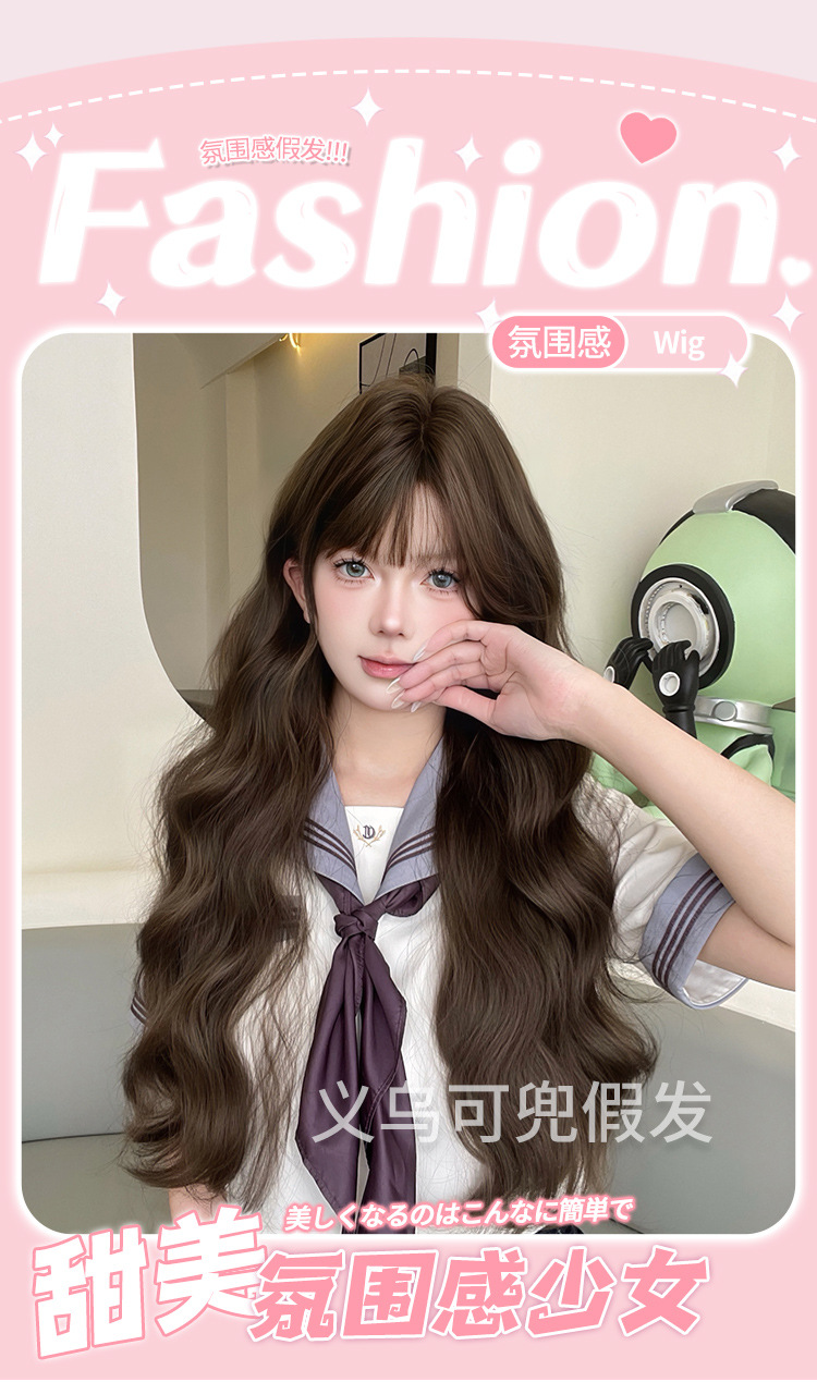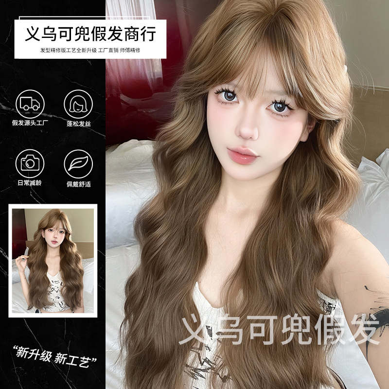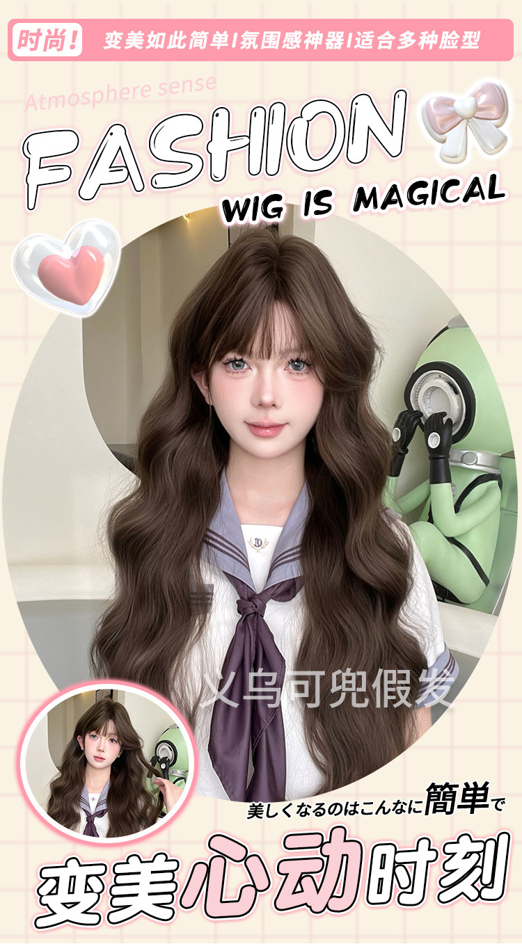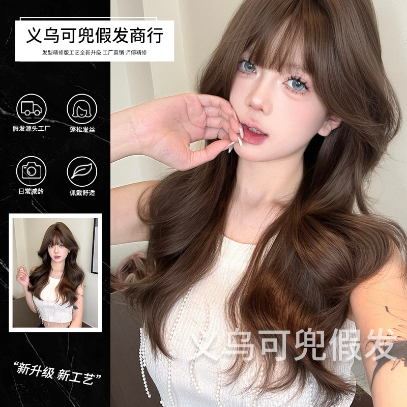 可兜かつら女性日常ネット赤冷茶色長巻き髪lolita甘い自然なリアルな前髪jk全頭