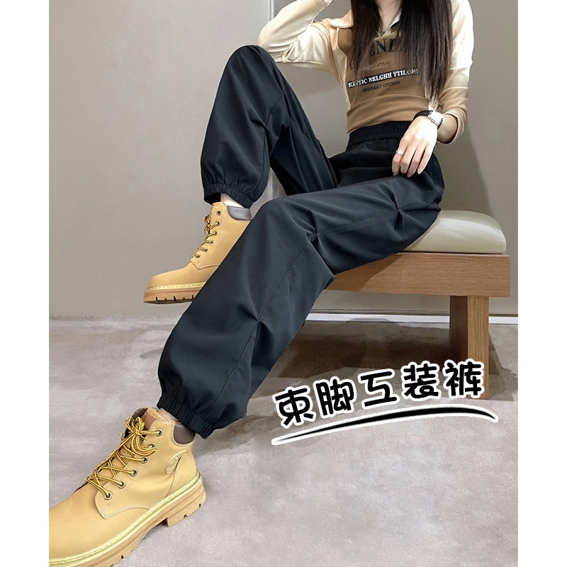 黑色工装裤女款2025新款早秋高腰显瘦酷飒风束脚美式户外登山裤子