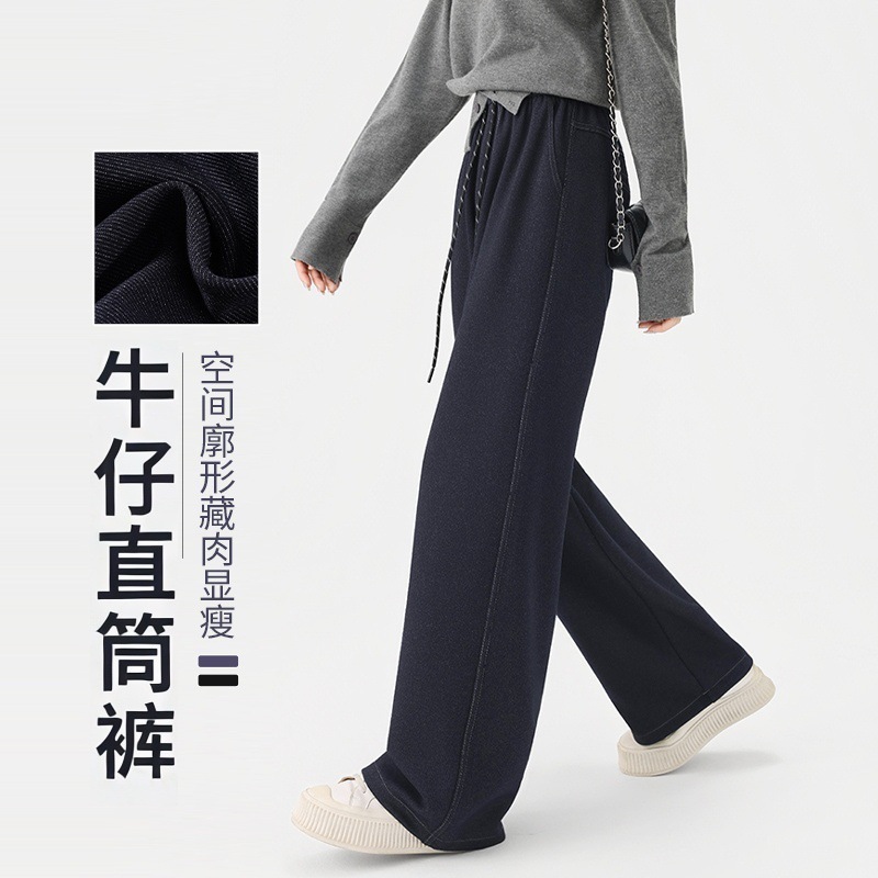 大码运动裤子女春季2026新款高级垂感宽松慵懒休闲美式直筒牛仔裤