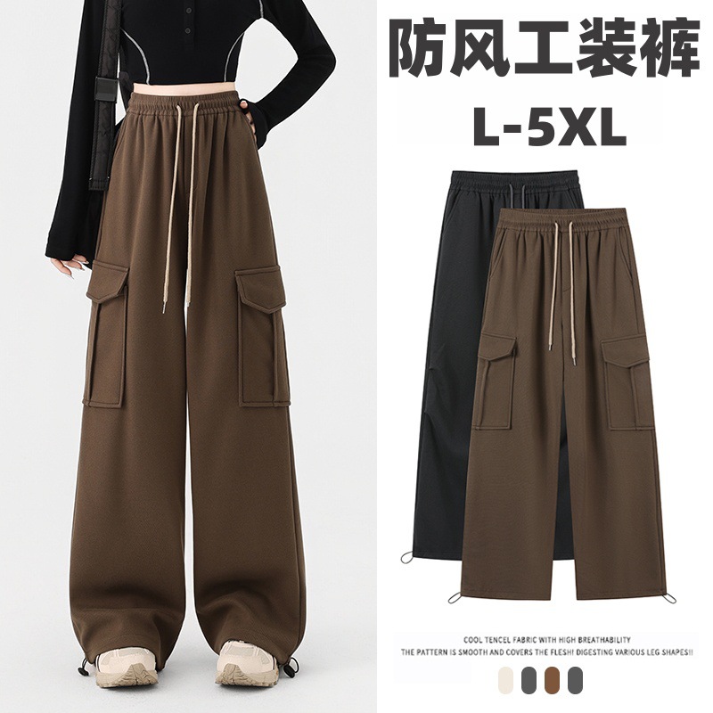 美式大码工装裤2025秋冬新款高腰显瘦休闲宽松垂感阔腿裤百搭长裤