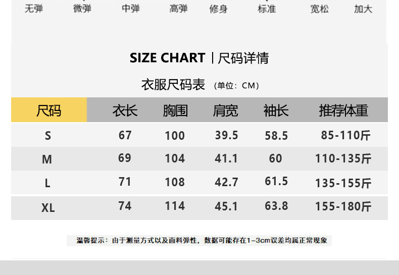 S 推奨 85 ~ 55kg (150 ヤード),M 推奨 55-67.5kg (160 ヤード),L 推奨 67.5-77.5kg (170 ヤード),XL 推奨 77.5-90kg (180 ヤード)