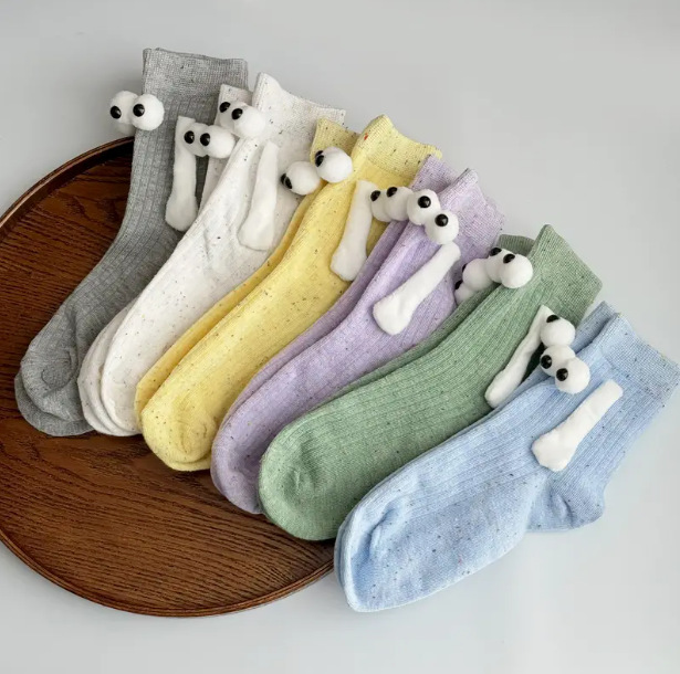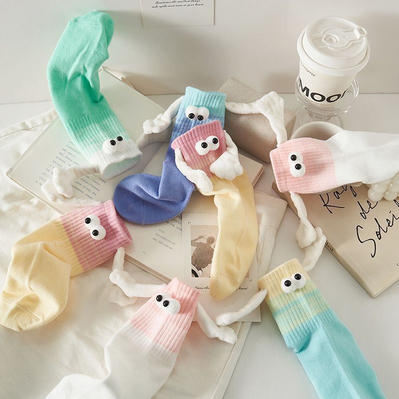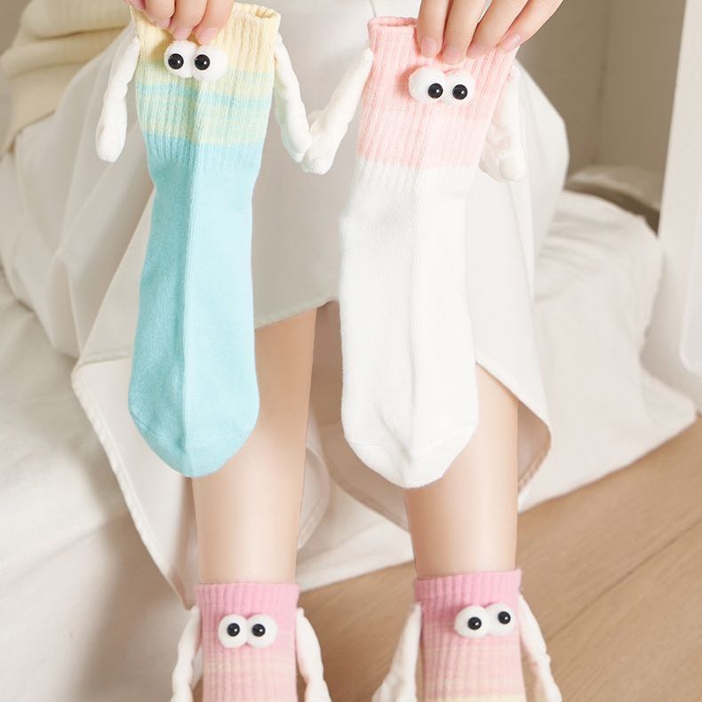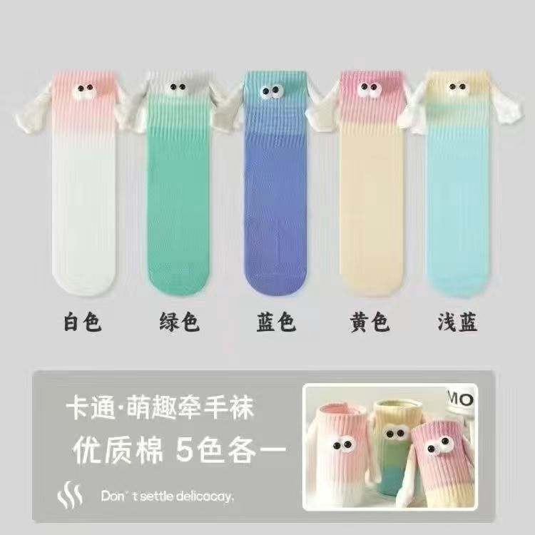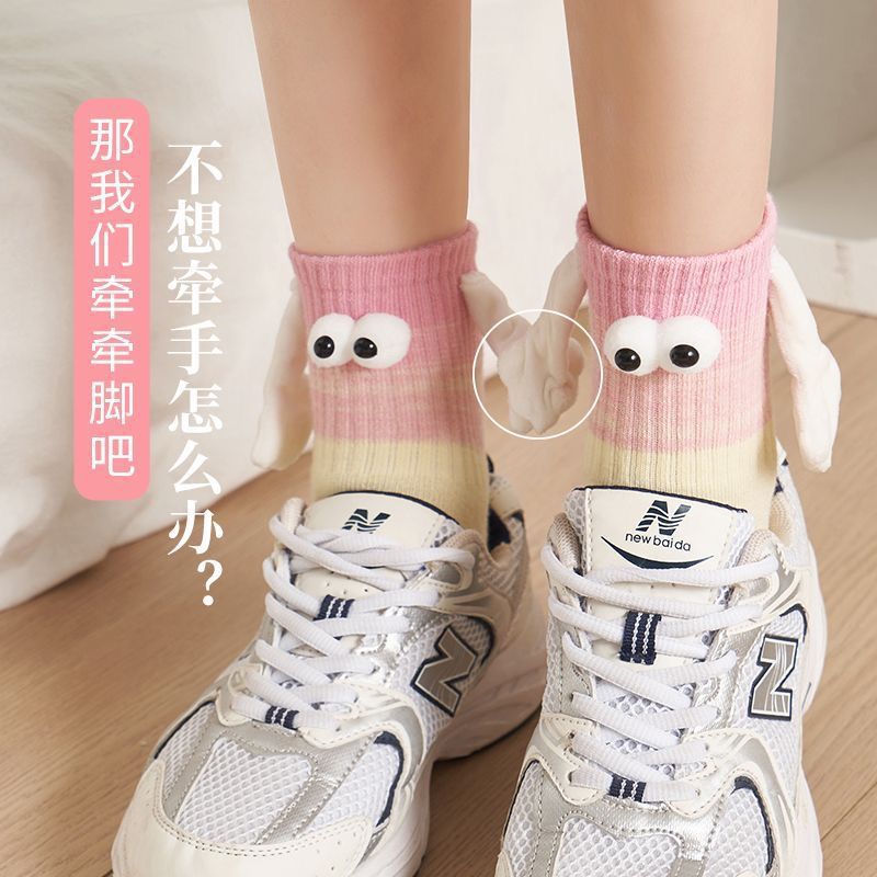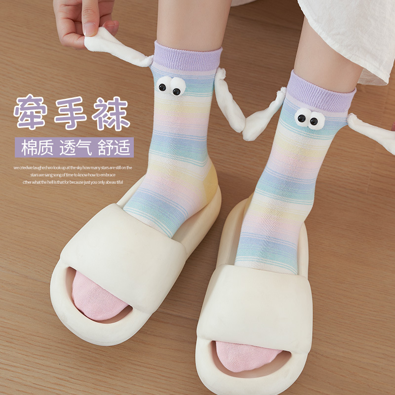 春夏季2025新款可爱时尚牵手的磁吸袜子吸汗男女情侣款手牵手袜子