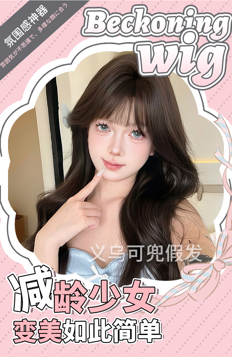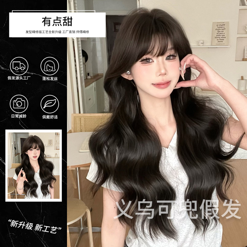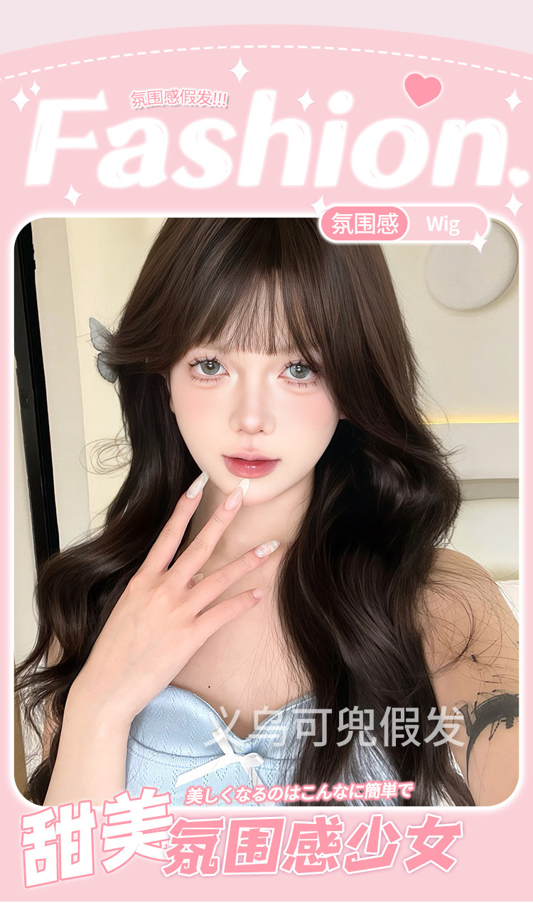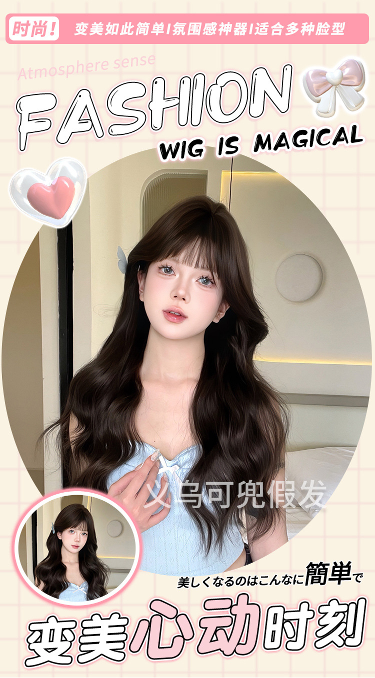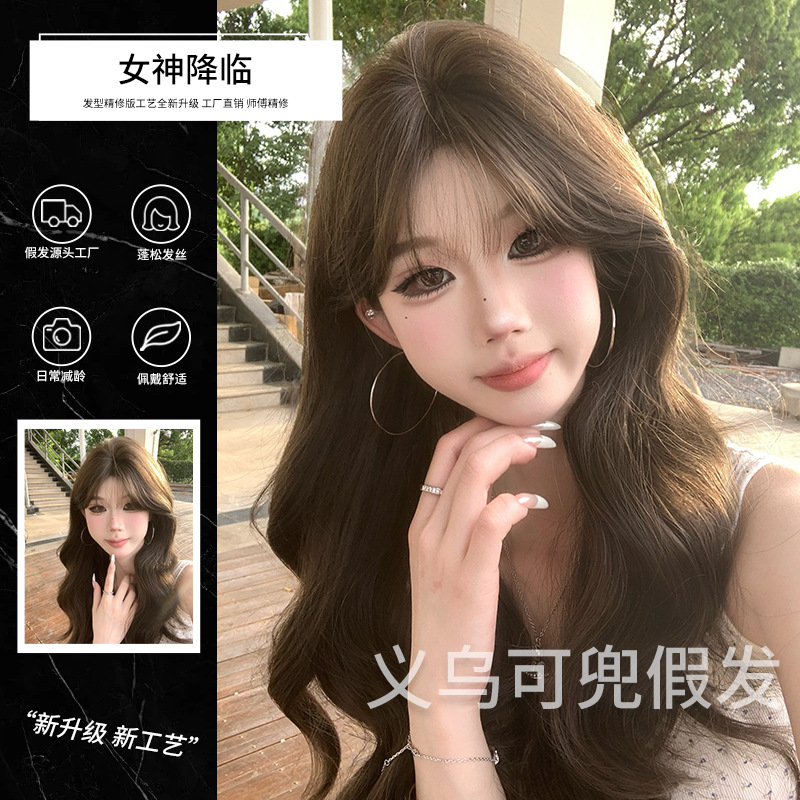 可兜かつら女性日常ネット赤冷茶色長巻き髪lolita甘い自然なリアルな前髪jk全頭