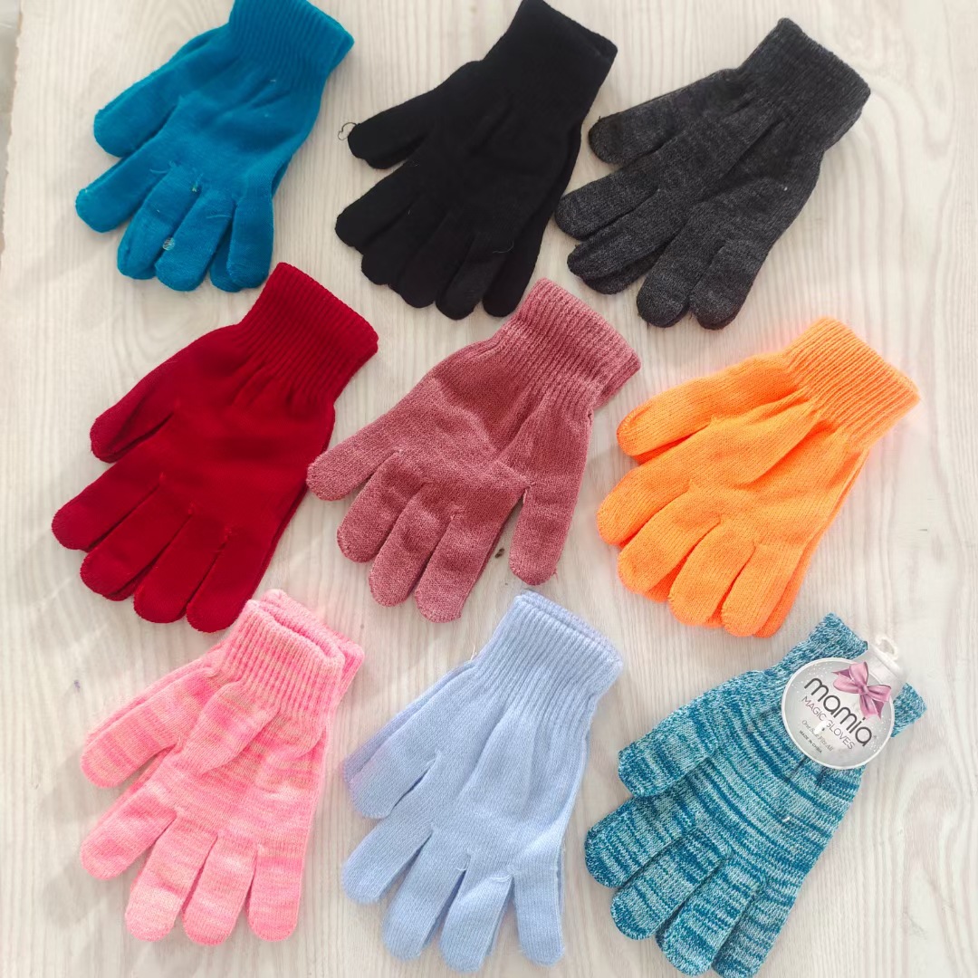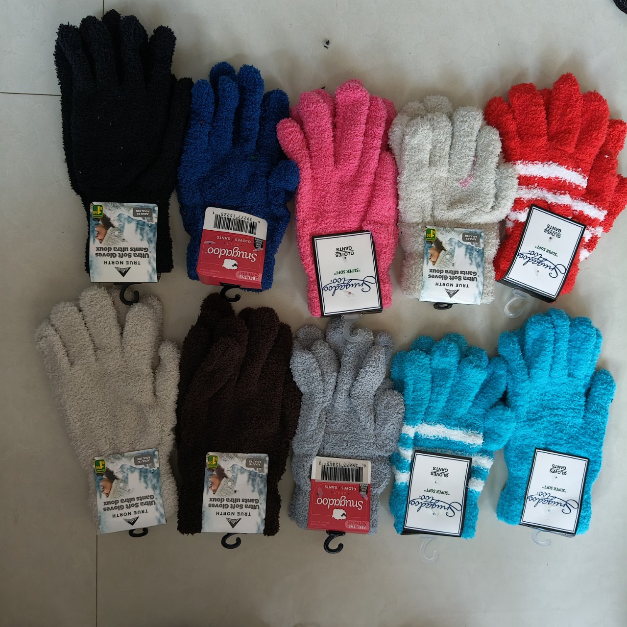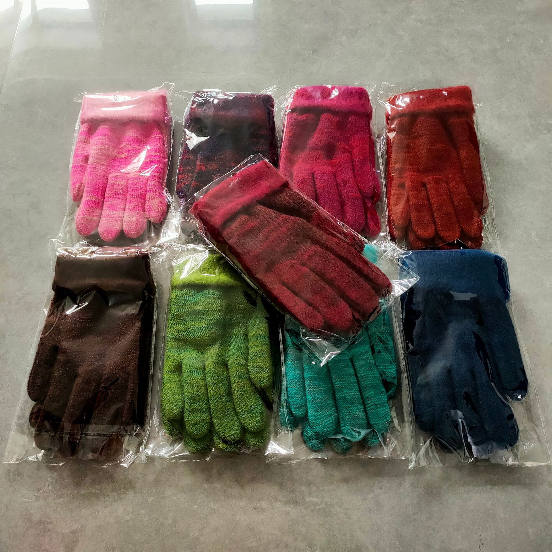 在庫男女半端パイルはキャンディー色の純色の男女五本指手袋卸売りを厚くしている