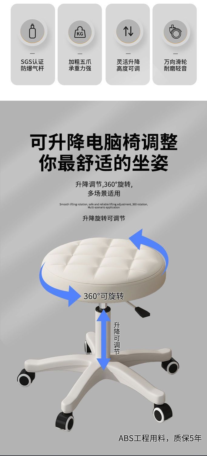 美容院专用旋转凳子升降大工椅滑轮美甲椅理发店家居圆椅子美睫凳