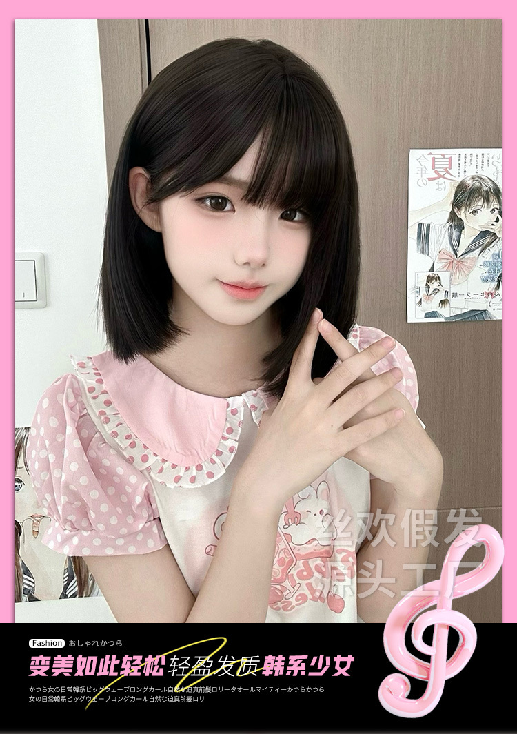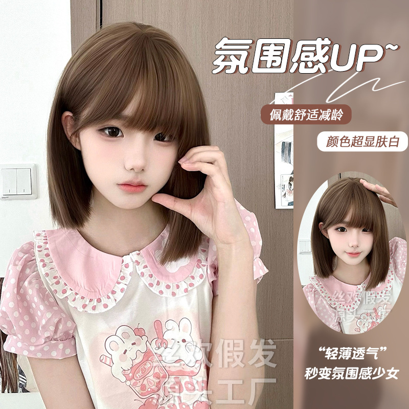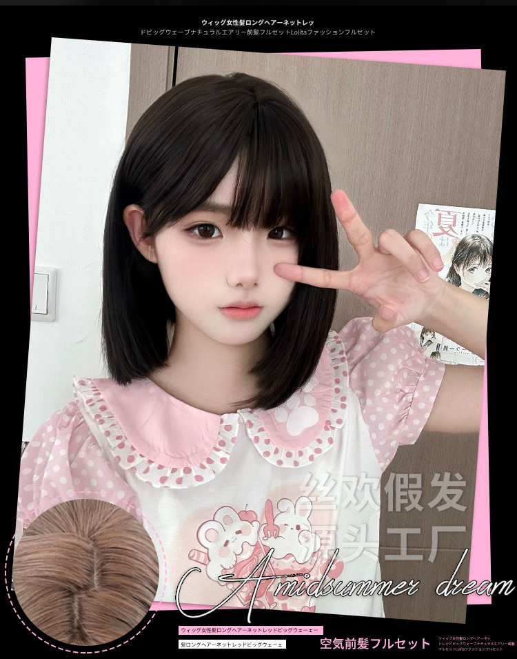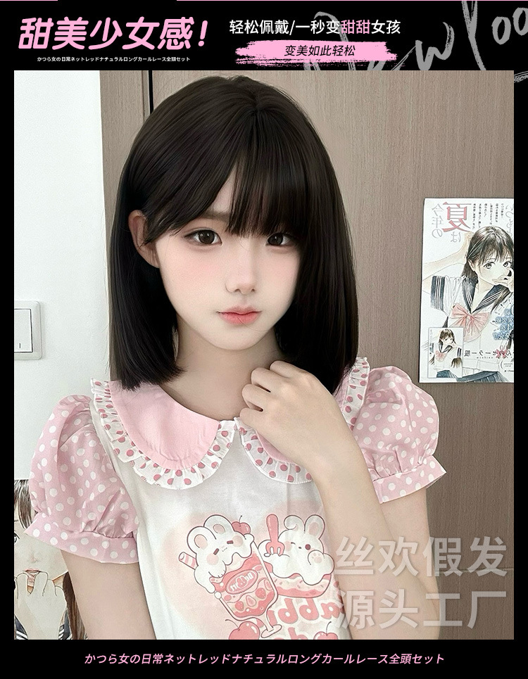 糸歓クロスボーダーかつら女性日常ショートヘアネット赤新作lolita自然にリアルな夏の甘いjk全頭カバー