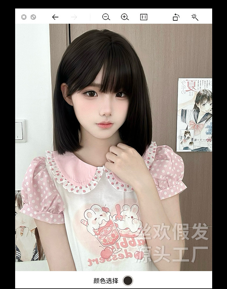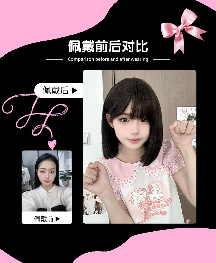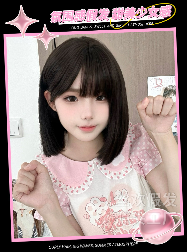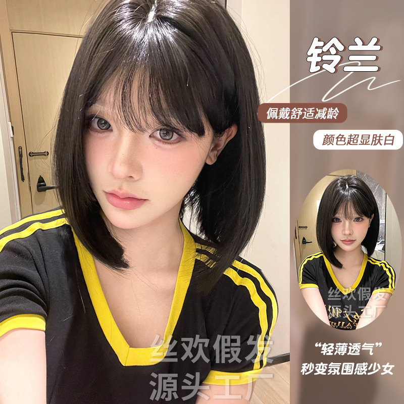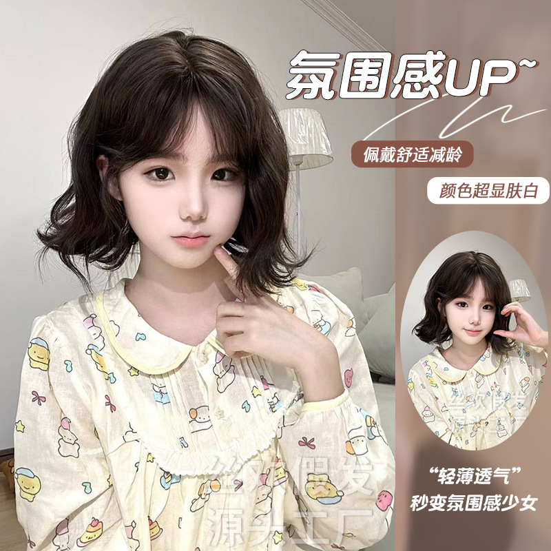 糸歓クロスボーダーかつら女性日常ショートヘアネット赤新作lolita自然にリアルな夏の甘いjk全頭カバー