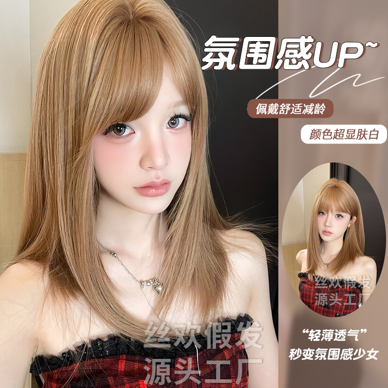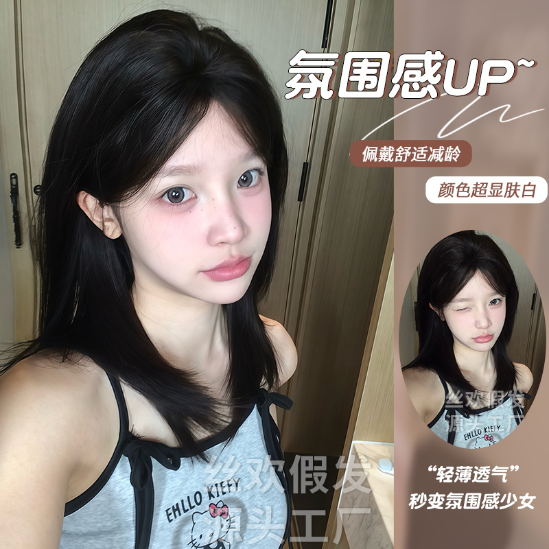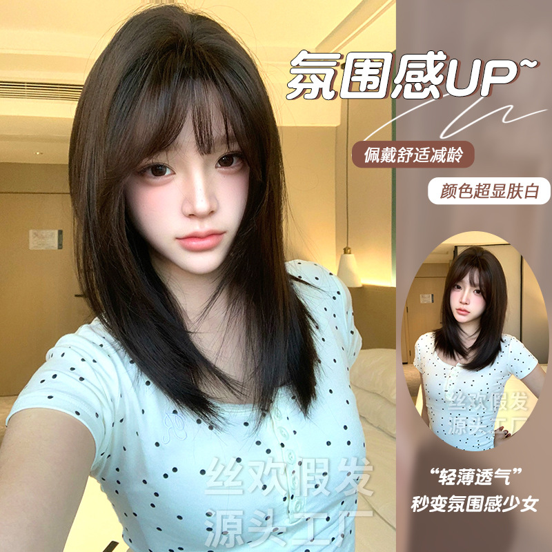 丝欢假发秋季自然逼真学生头中长发全头套整顶假发