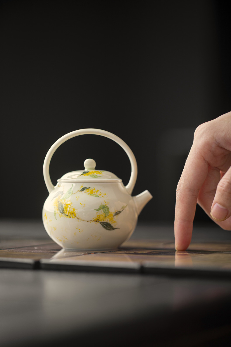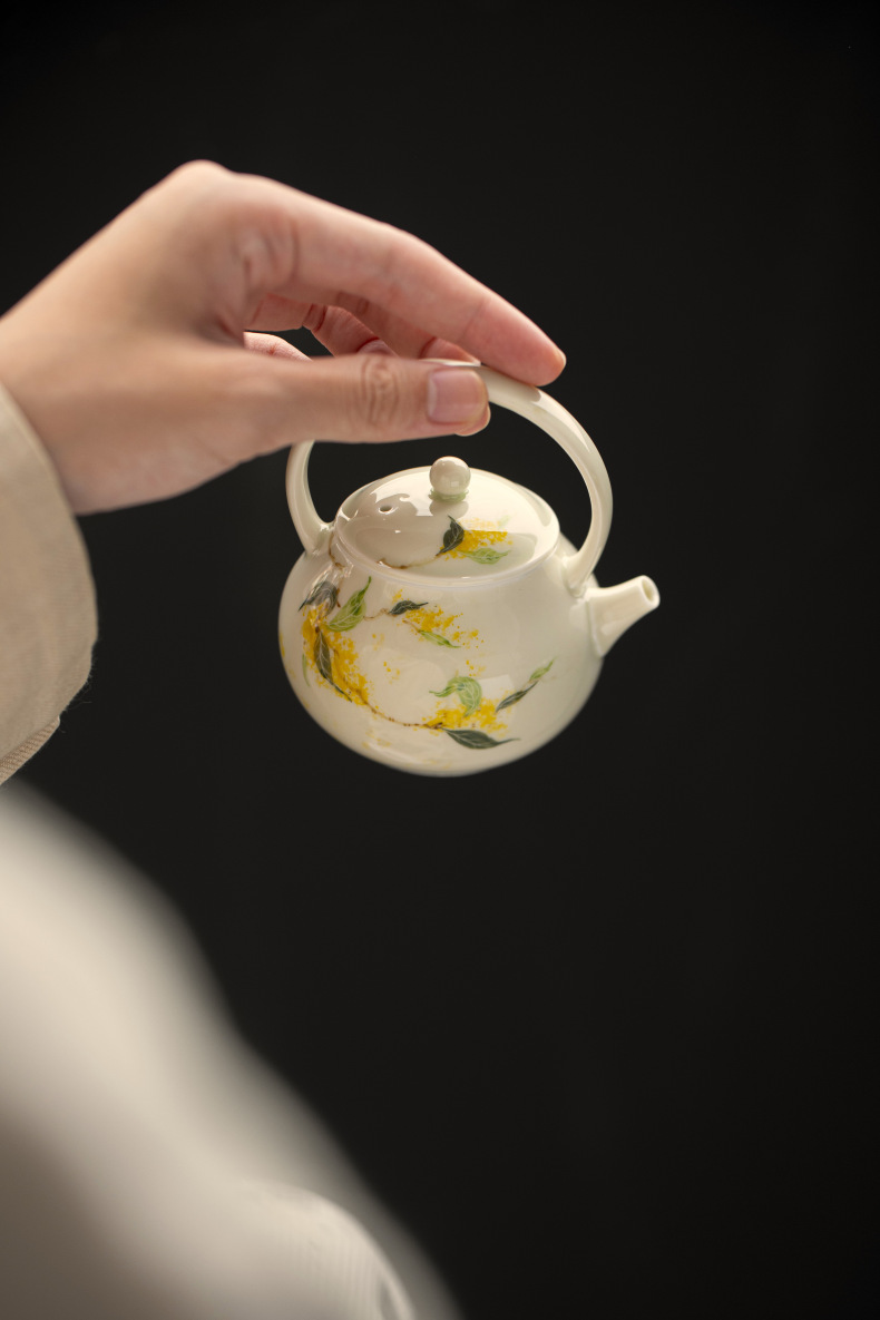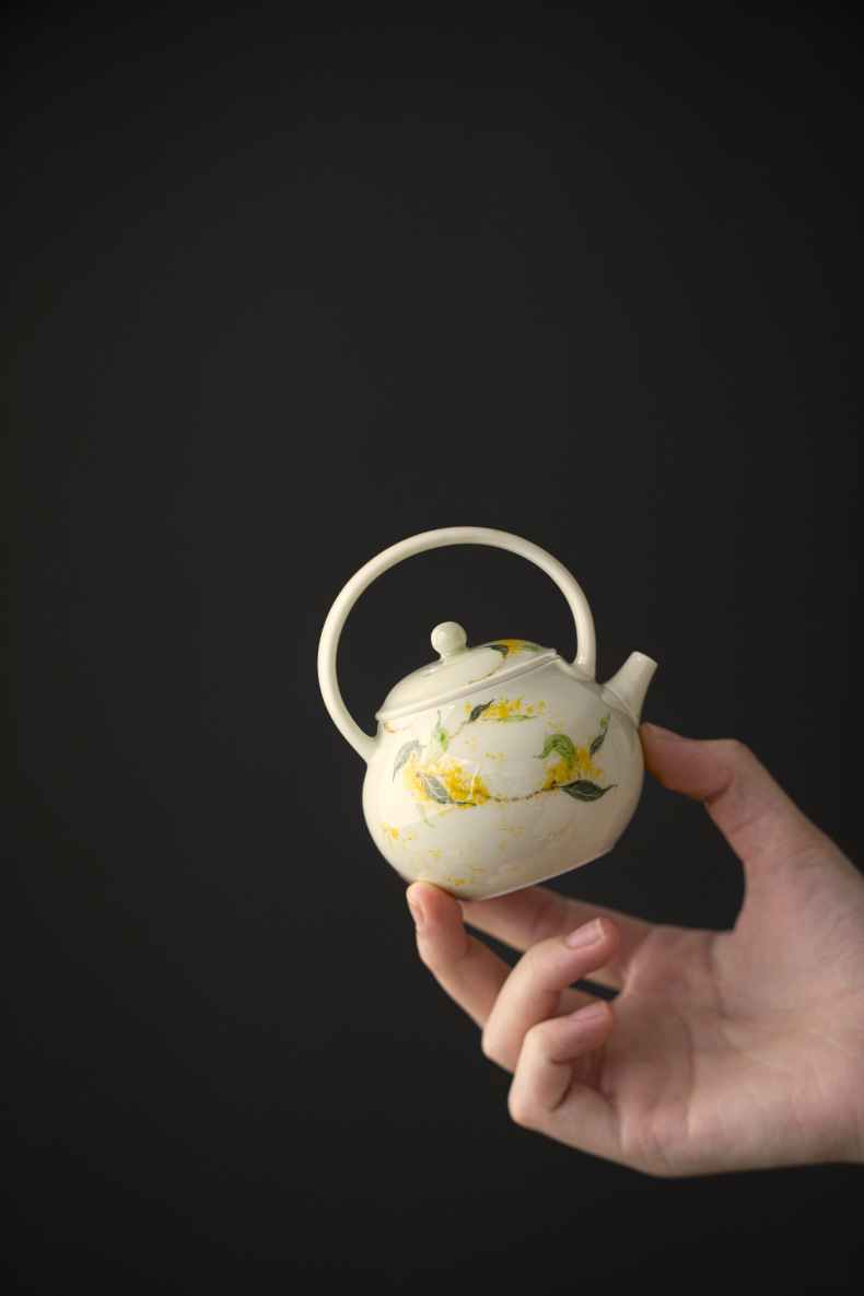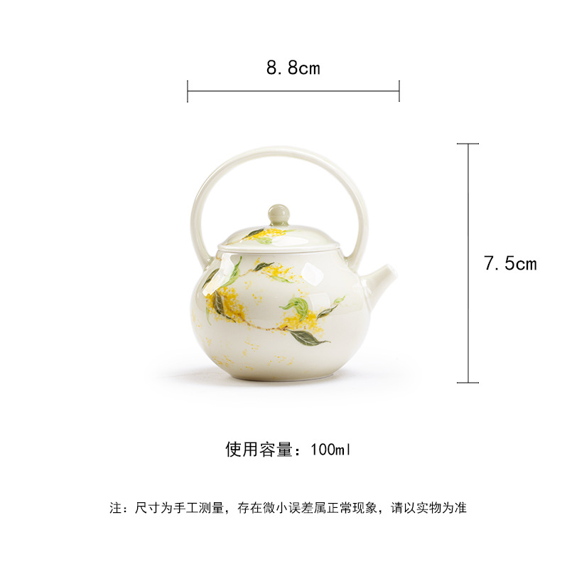 釉薬下彩純手描き桂花陶磁器提梁壺家庭用工夫茶道具文人泡急須中国式小壺単壺