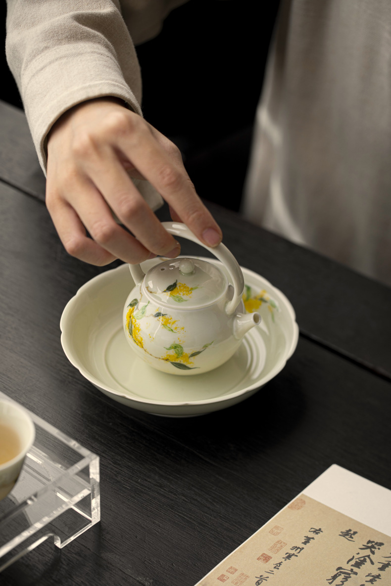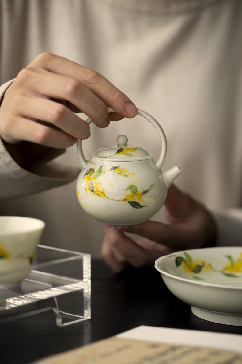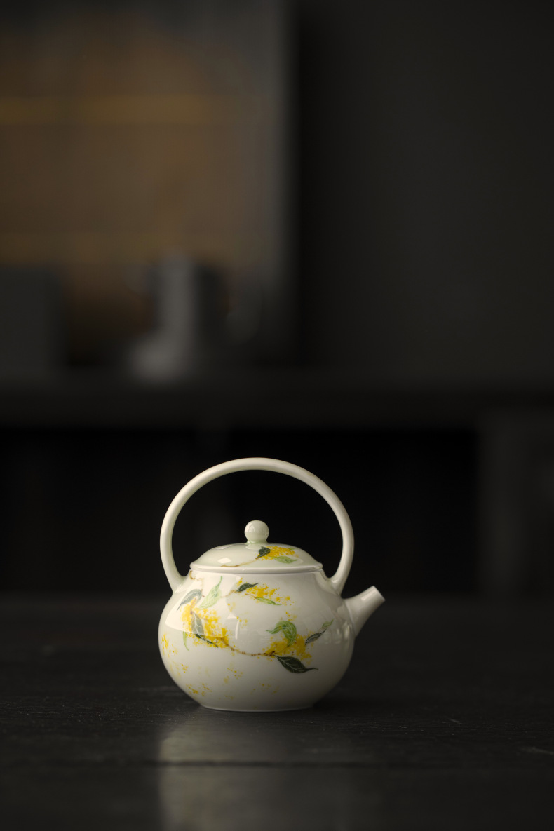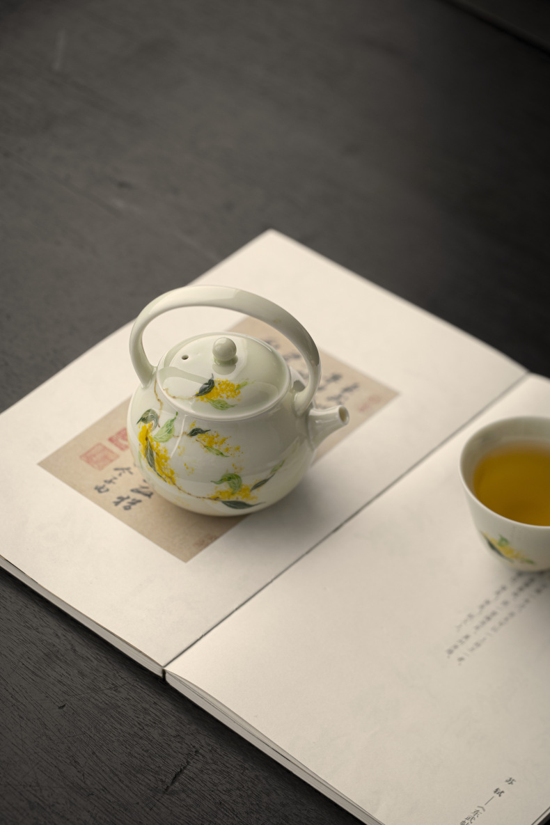 釉薬下彩純手描き桂花陶磁器提梁壺家庭用工夫茶道具文人泡急須中国式小壺単壺