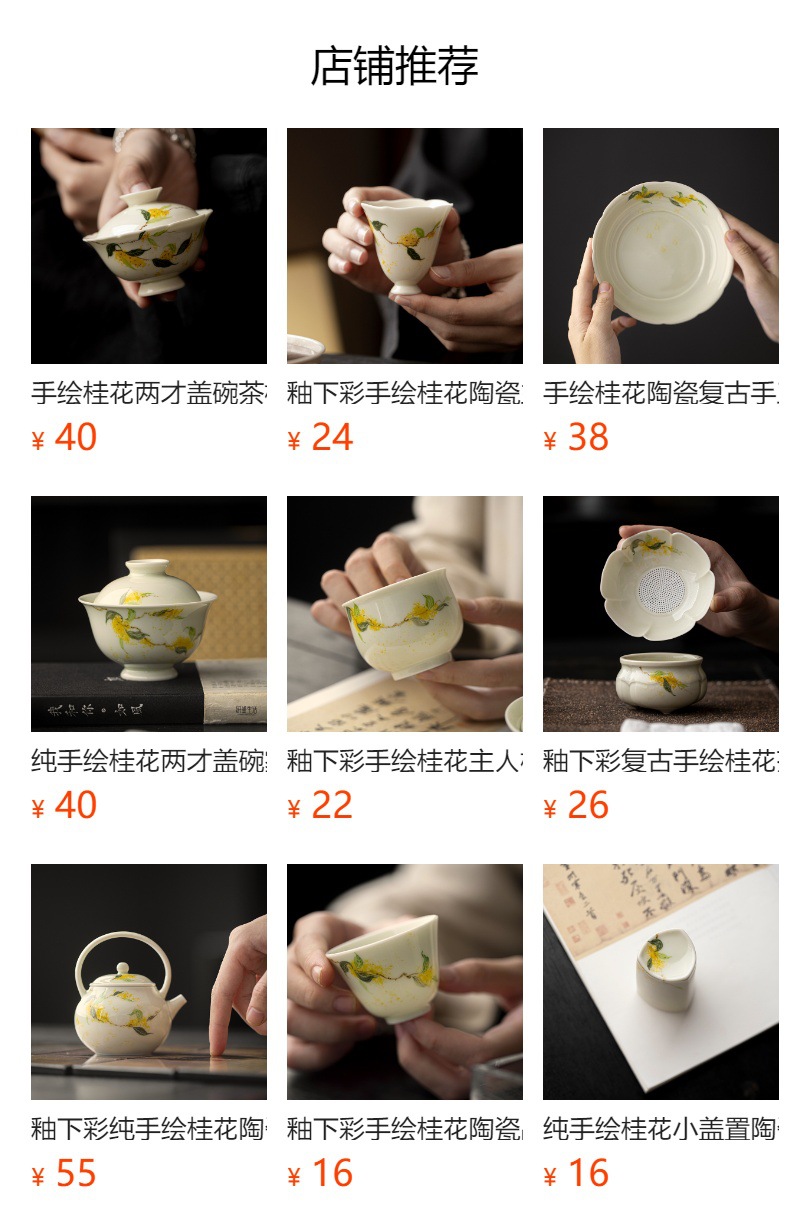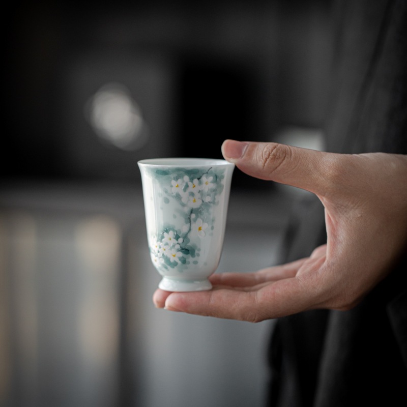 釉薬下彩手描き桂花陶磁器品茗杯トランペットカップ中国式工夫茶器家庭用お茶カップ単杯