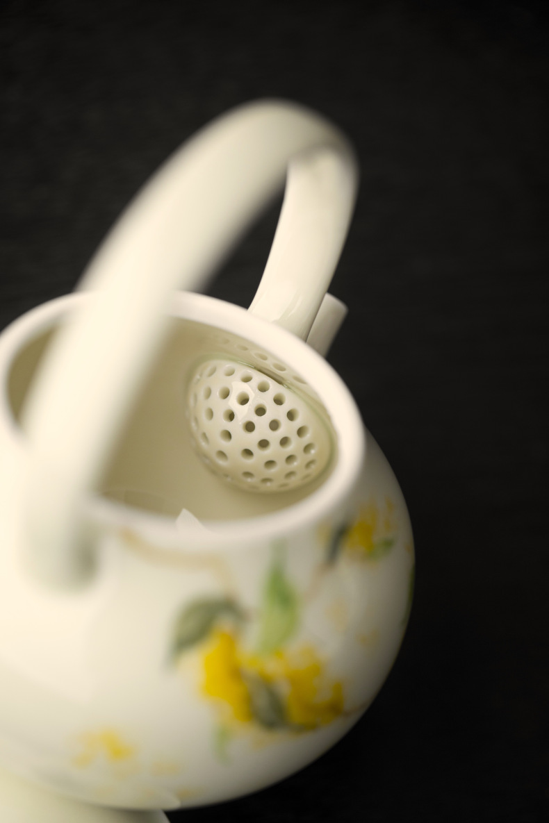 玉泥白磁の手描きの蘭の銅は梁の壺のティーポットの中国式の工夫の茶器の陶磁器の家庭用のお茶を入れます。