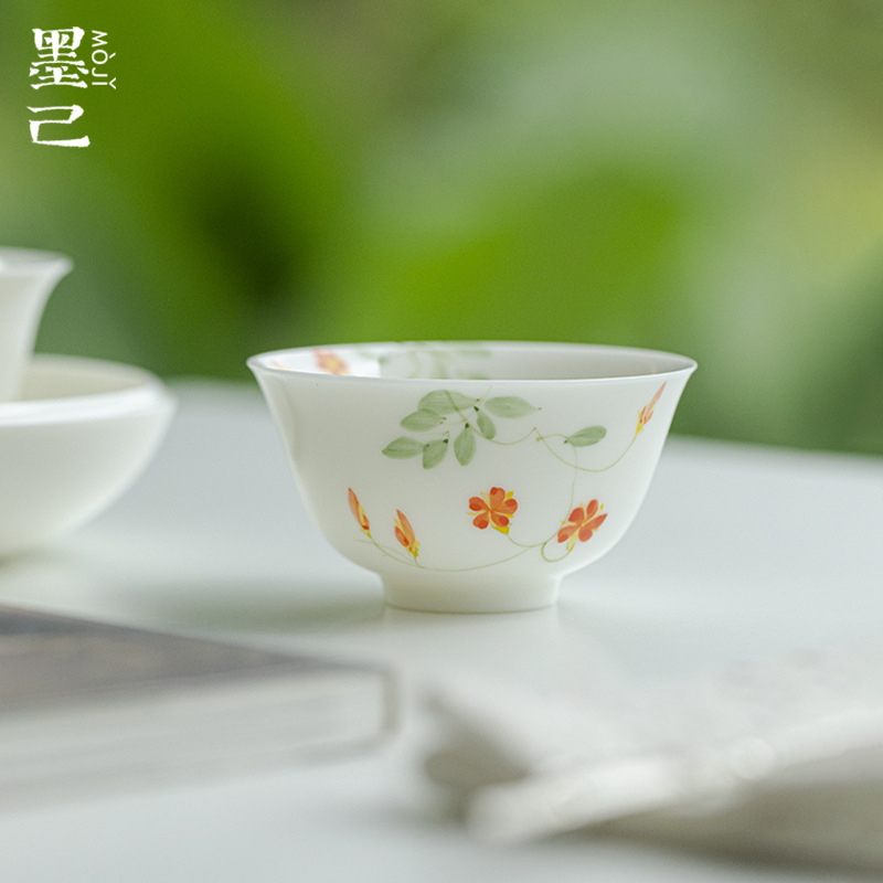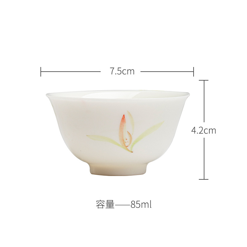 墨己手描き玉蘭薄胎品茗杯工夫茶器家庭用陶磁器単杯カップ釉薬下蘭小コップ