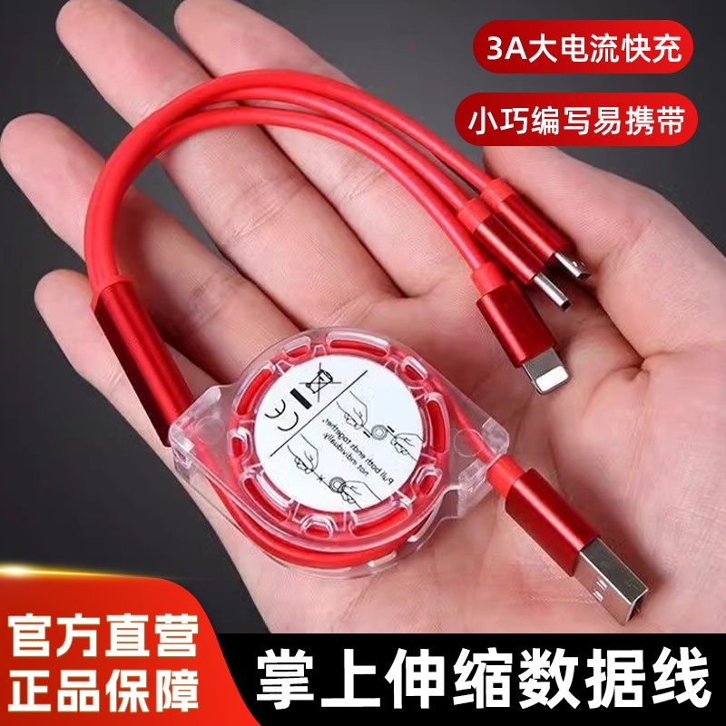 一引き三伸縮データ線三合一多機能携帯電話充電線データ線携帯電話充電線