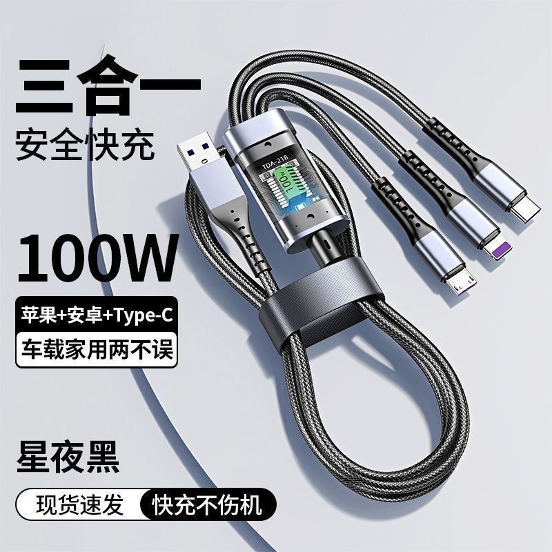 極客線三合一データ線120w超速充データ線三合一携帯電話充電線一引き三