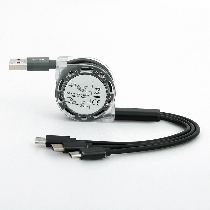 1対3伸縮式データケーブル、3in1携帯電話充電ケーブル、急速充電、企業向け実用展示会ギフト、プロモーション