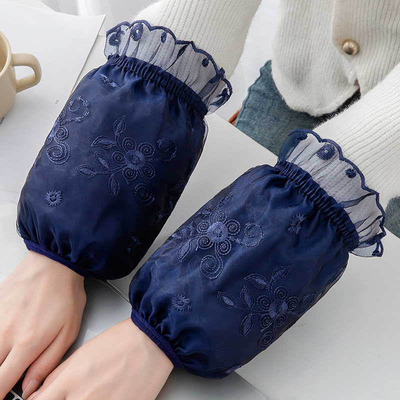 秋冬二重袖カバー防水防汚防油金網袖カバー女性ショートレース袖保護スリーブ
