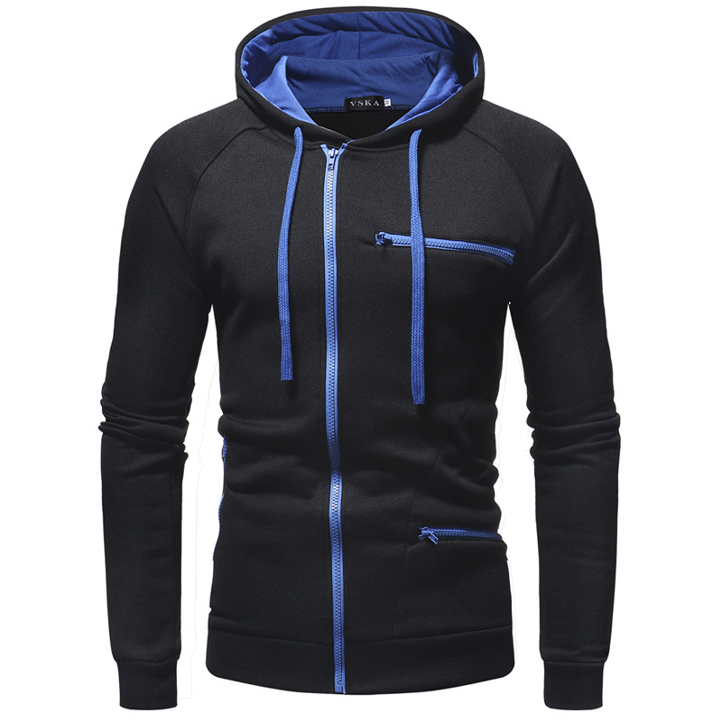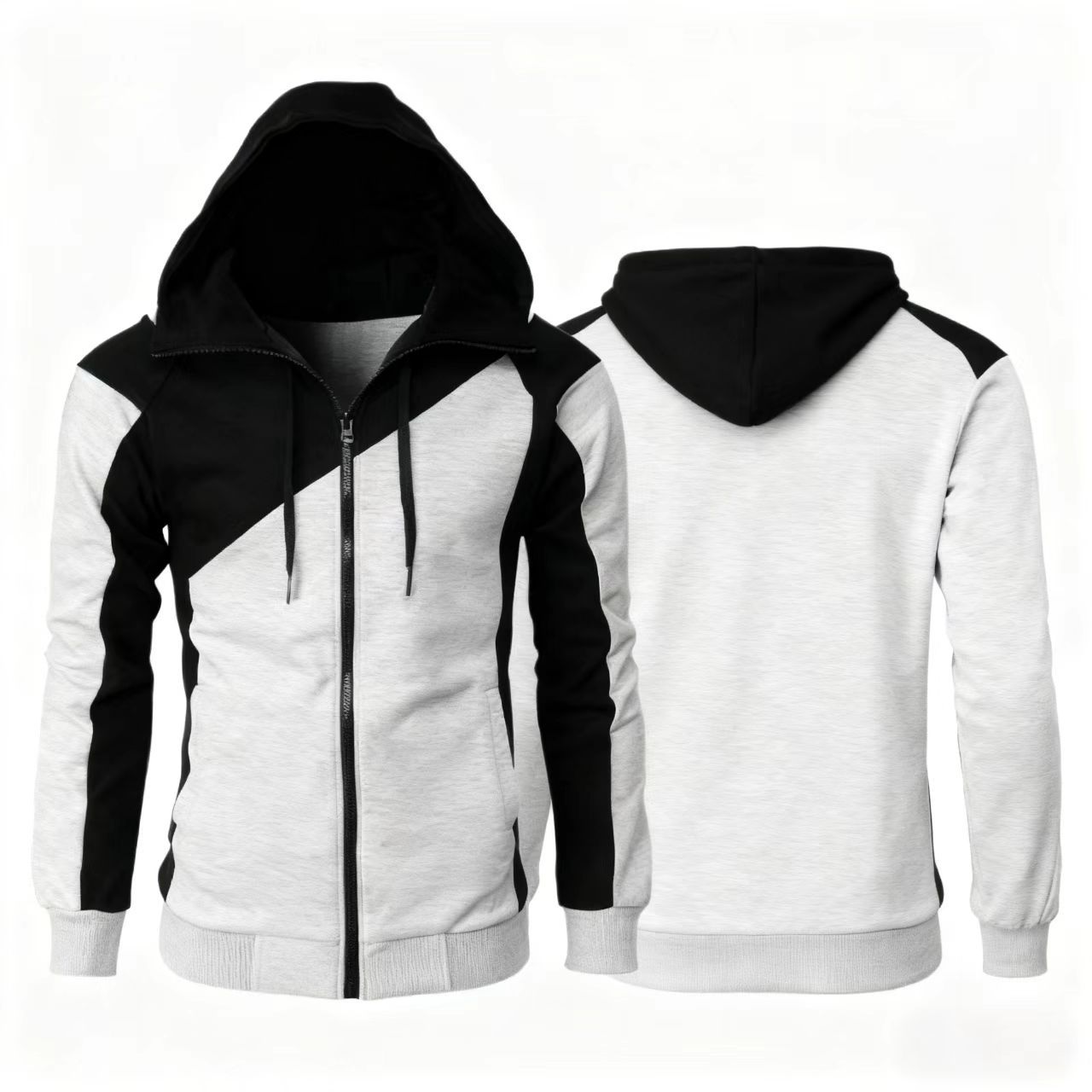 新款跨境健身卫衣男士全拉链连帽拼接欧码百搭长袖外套运动衫