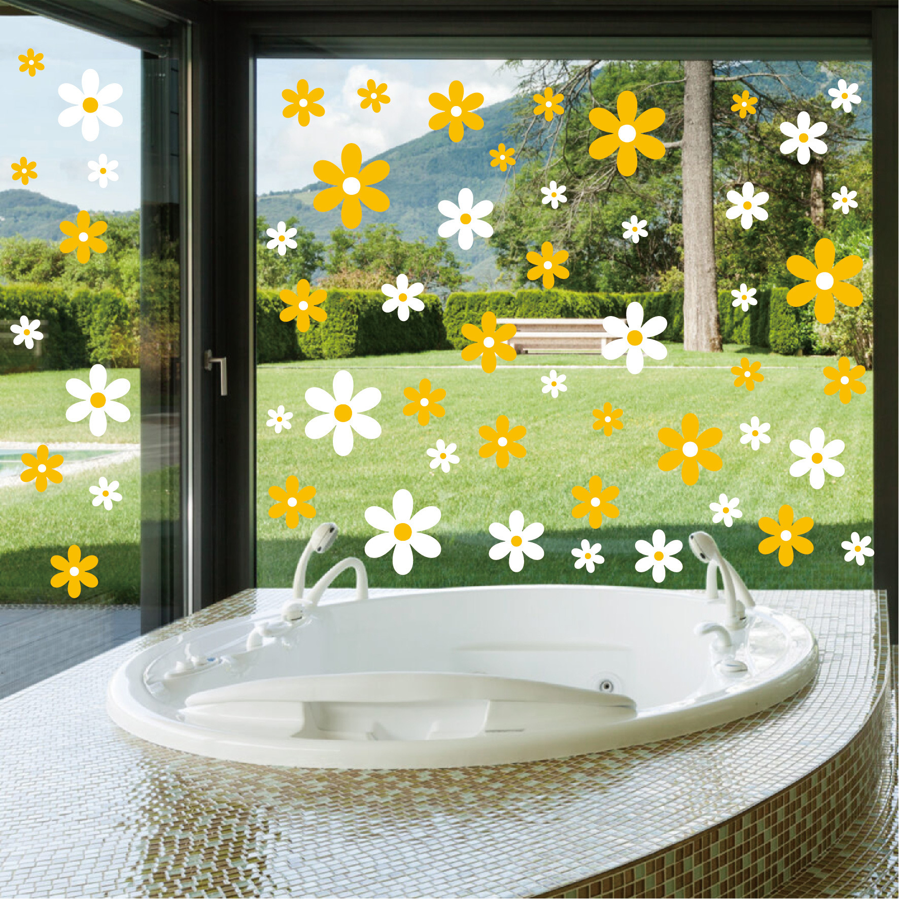 国境を越えたガラス静電気シールガラスショーウインドーのドア装飾花卉家庭客間防水ピンクのデイジーの花窓