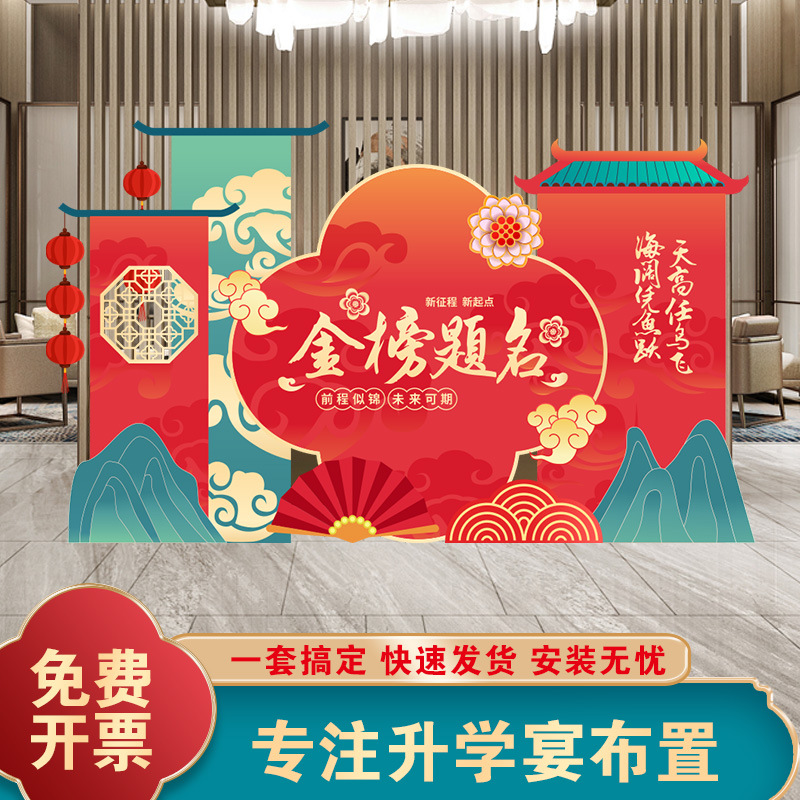 大学入学祝宴、大学受験、大学感謝宴会、ホテルシーンのレイアウトと装飾、ktボードの背景壁チェックイン