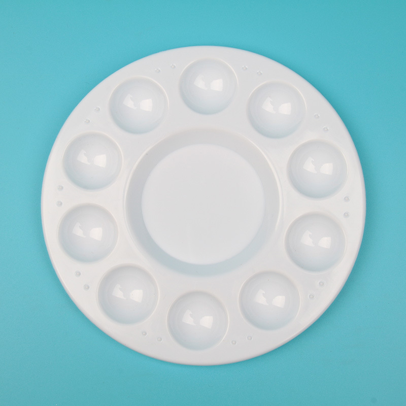 クロスボーダー10穴プラスチック円形初学美術絵画調色白色増厚児童簡易調色用インクディスク
