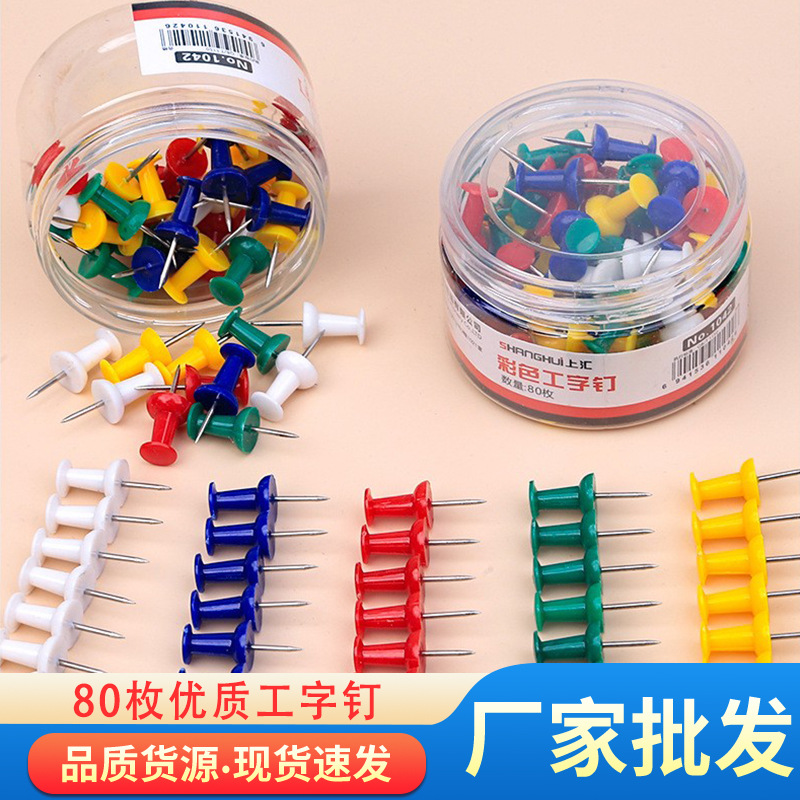 厂家直销彩色工字钉100枚桶装毛毡墙板图钉按钉大头针照片固定针