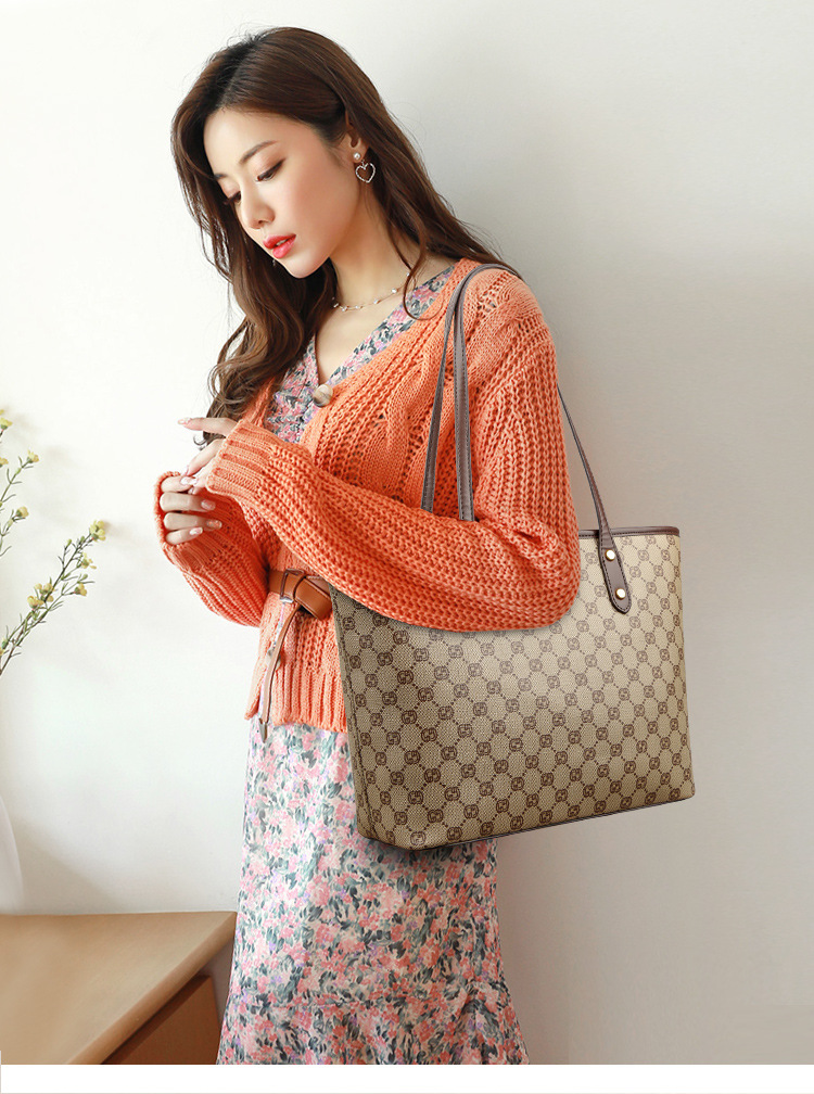 高级感托特包包女2025秋冬新款购物袋老花单肩包复古子母斜挎包软