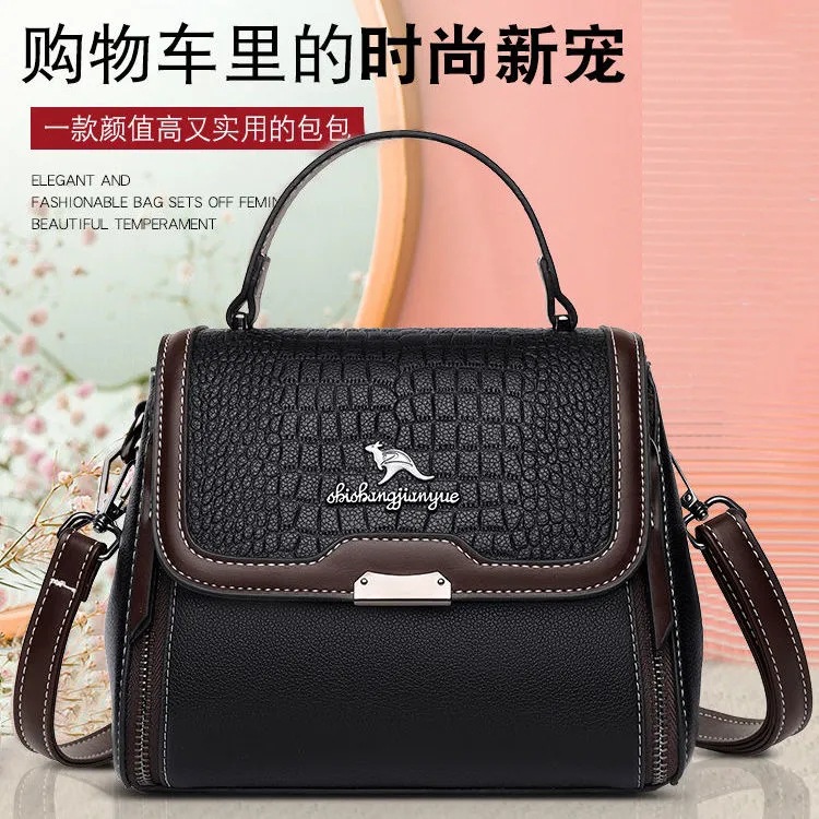 レディースハンドバッグ、新しい大容量多用途レディースバッグ、小石模様の雰囲気のカンガルーバッグ、お母さんと中年の女性のバッグ