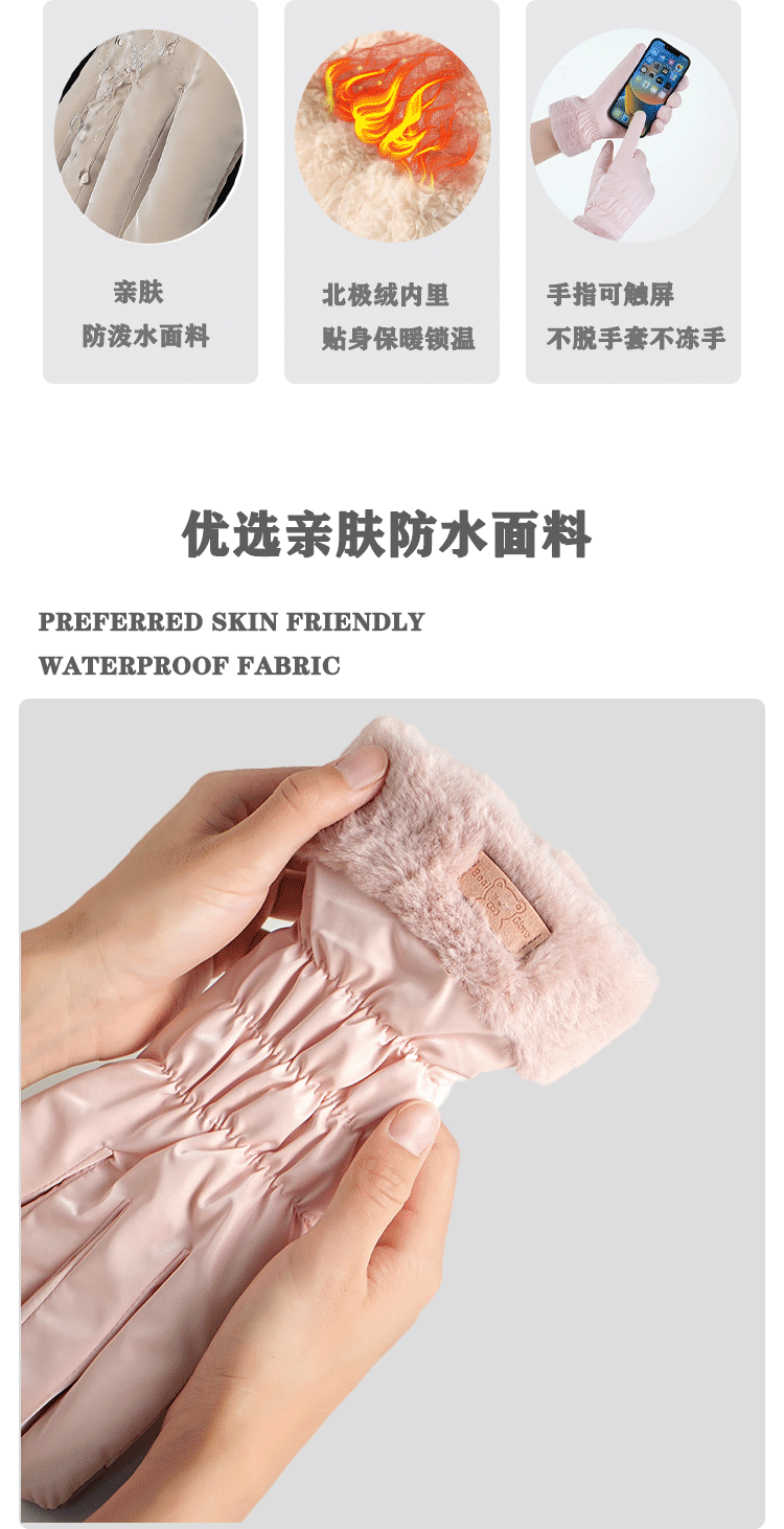 冬季防寒户外保暖手套女款防泼水防滑可触屏加绒加厚骑行滑雪手套