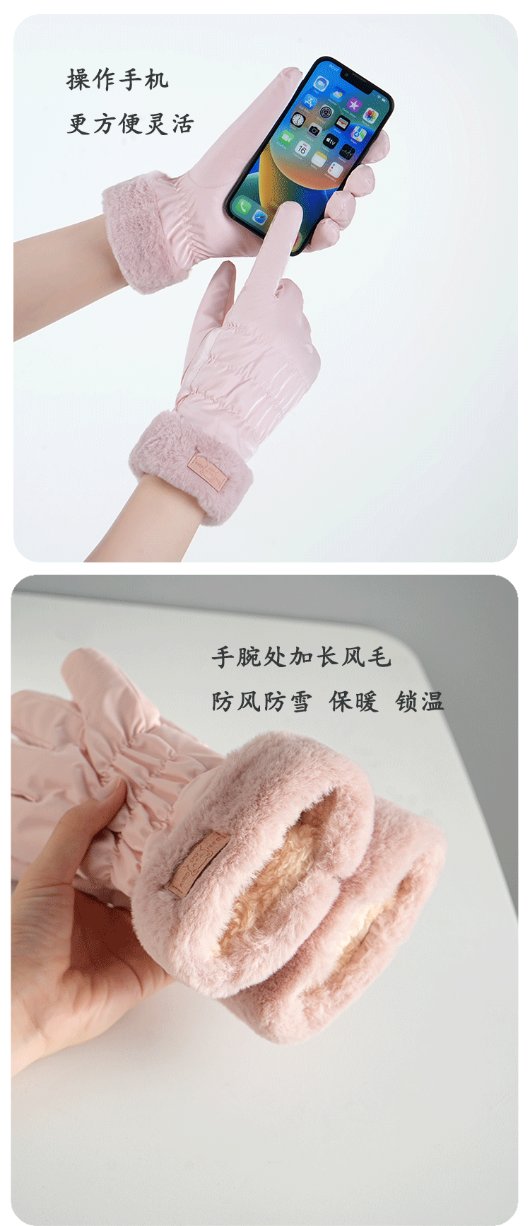 冬季保暖手套加厚绒韩系可爱学生触屏户外防滑防水开车骑行手套女