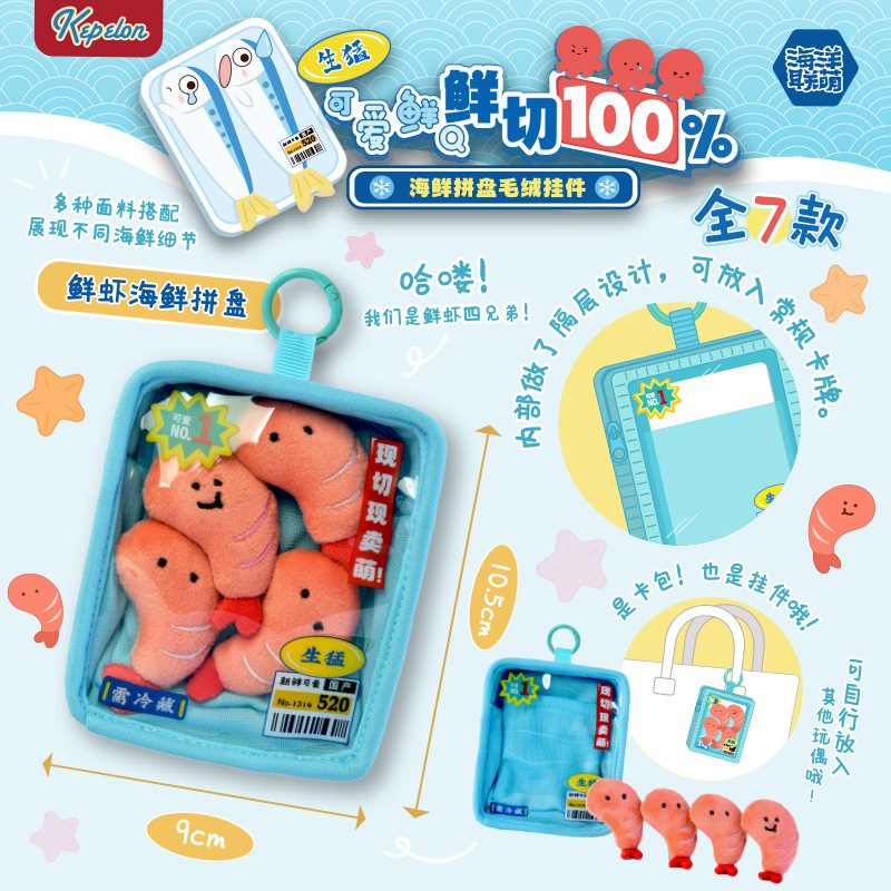 本物のシーフードマーケット、新鮮な海鮮、一緒に楽しい海の楽しみ、創造的なぬいぐるみ、さまざまなスタイルのシーフード人形バッグペンダント