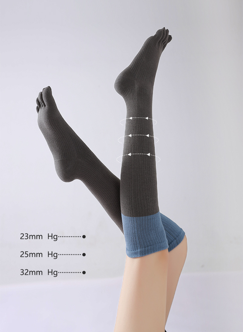 5本指のふくらはぎの靴下の女性の圧力はやせています。