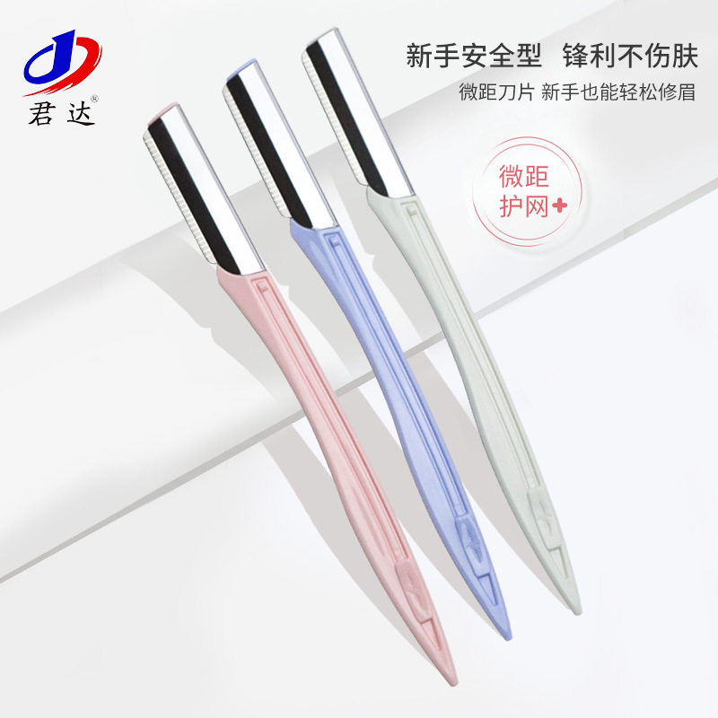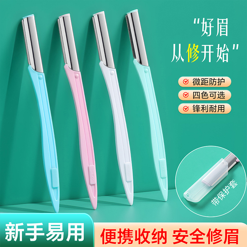 厂家批发直柄修眉刀不锈钢刀片刮眉刀防护网女士剃毛刀美妆工具